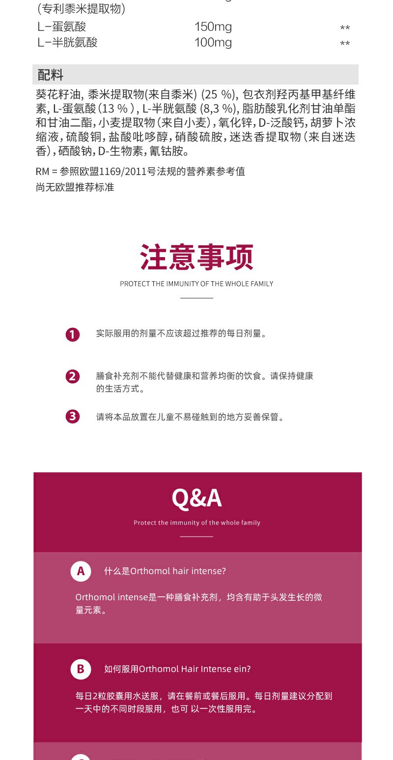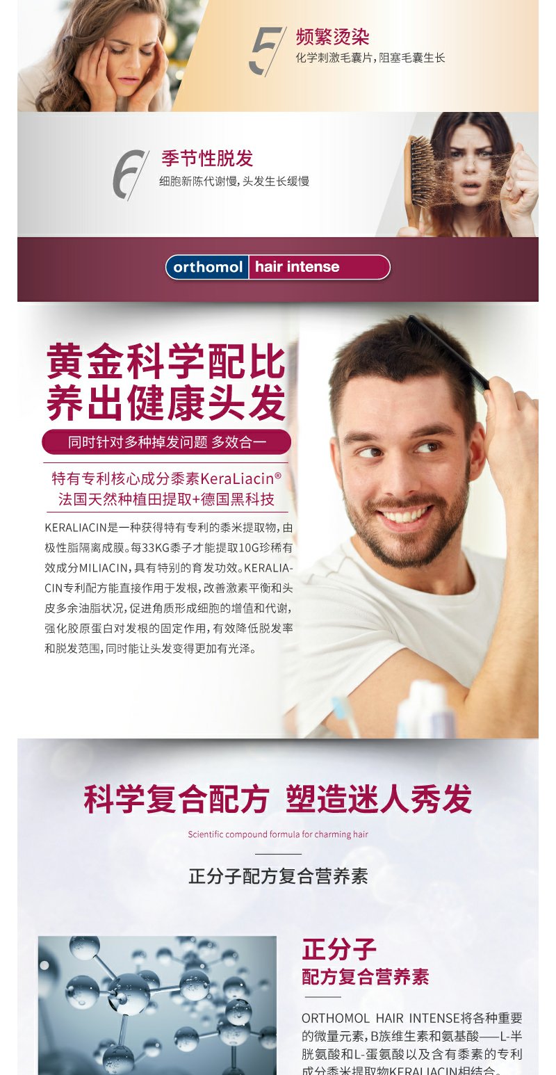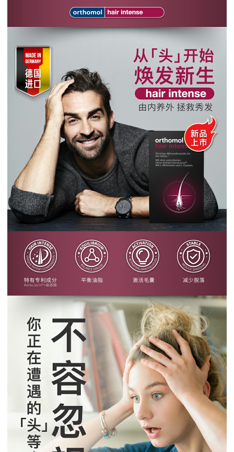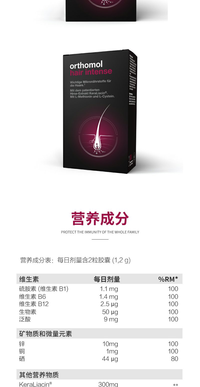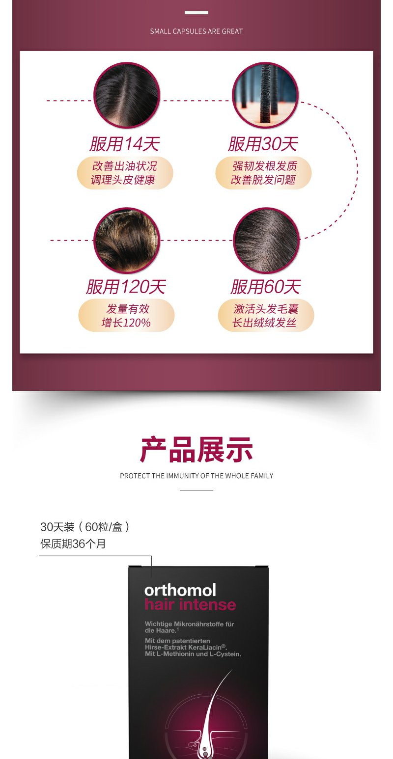 【Orthomol奥适宝】男士女士生发增发密发防脱发丰盈秀发胶囊30天装