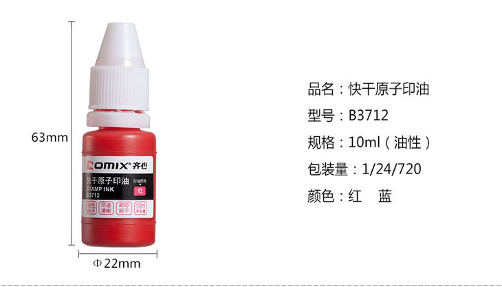 齐心印油B3712-10ml红高级原子