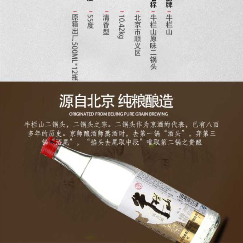 牛栏山二锅头原味白酒55度整箱500ml*12瓶