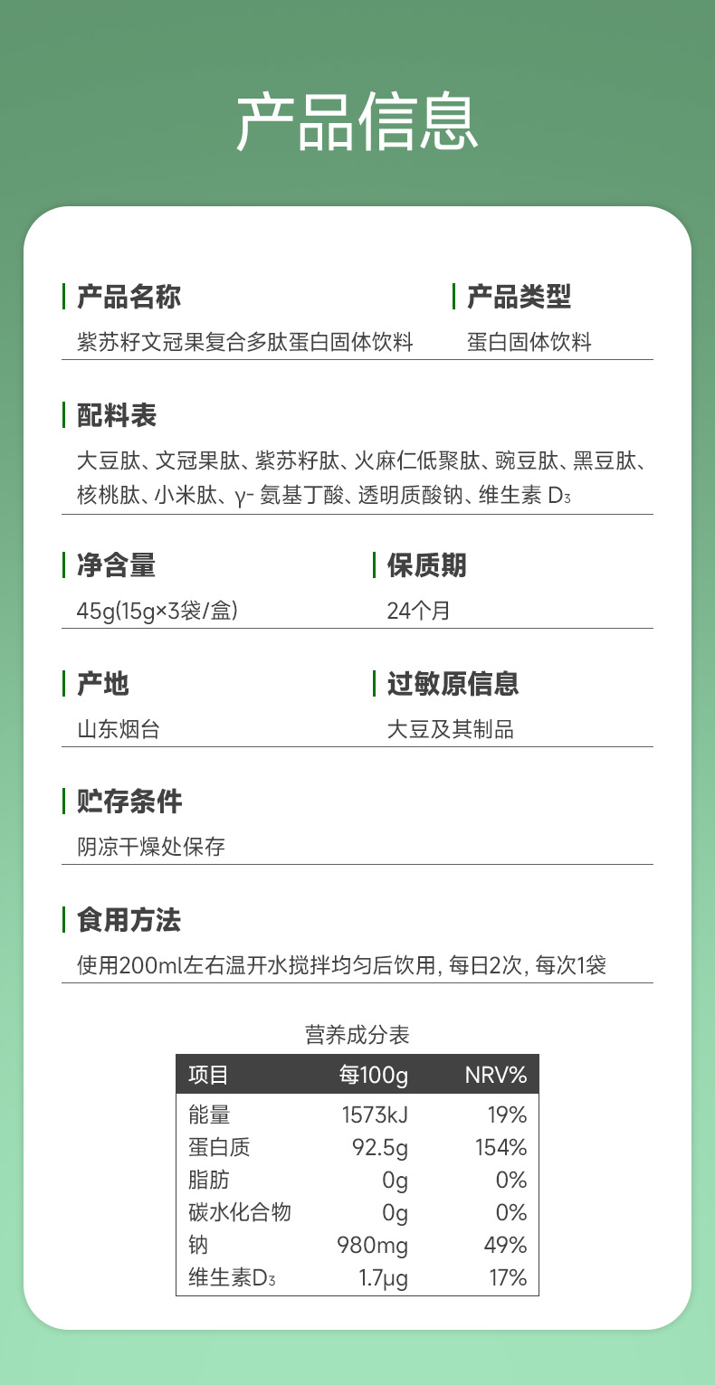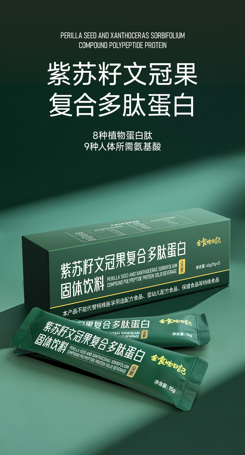 全食物日记 紫苏籽文冠果复合多肽蛋白固体饮料45g(15g*3袋)体验装