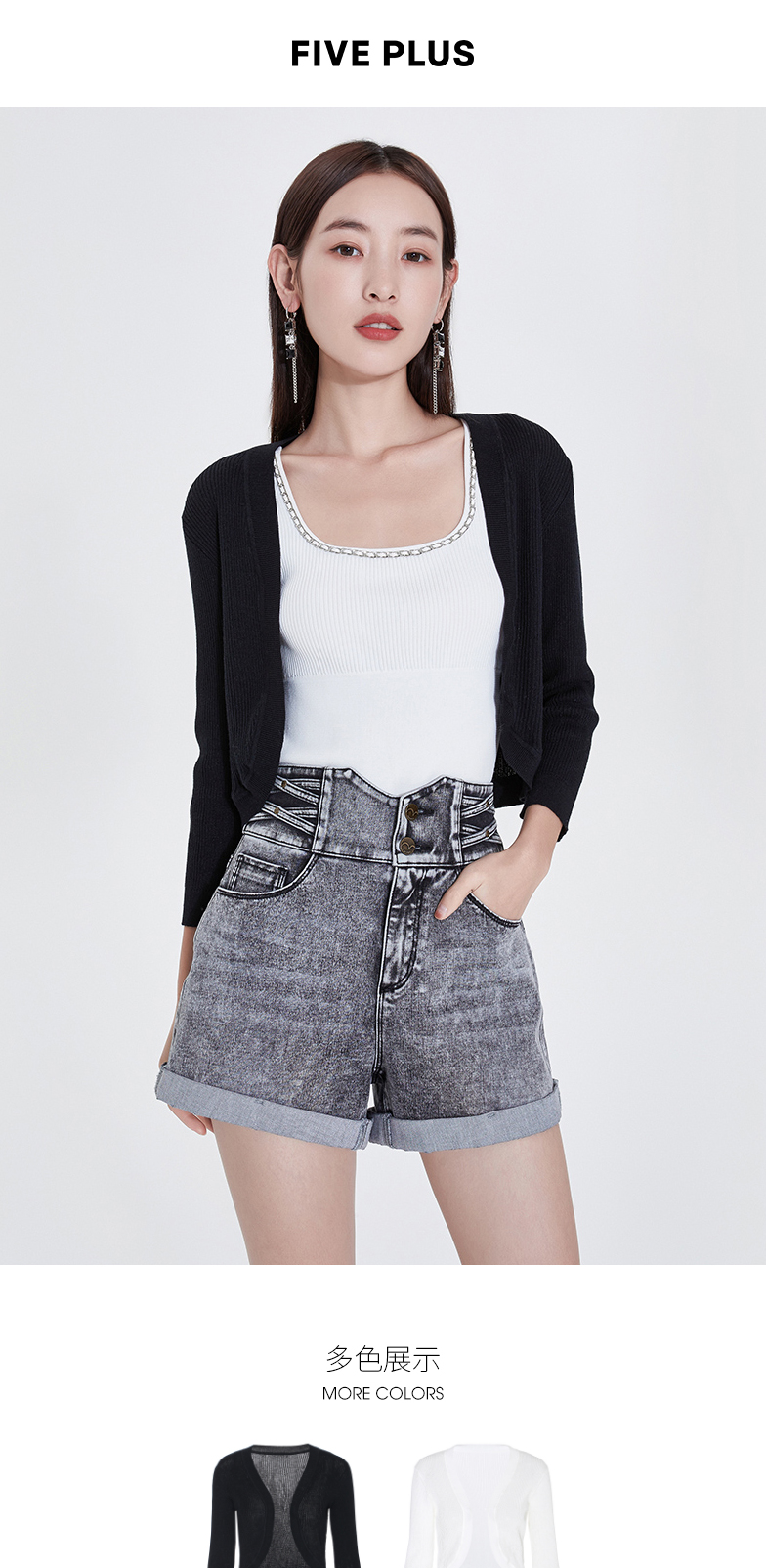 FIVE PLUS2022新款女夏装气质针织衫女修身显瘦短款小众开衫上衣2WN2032480