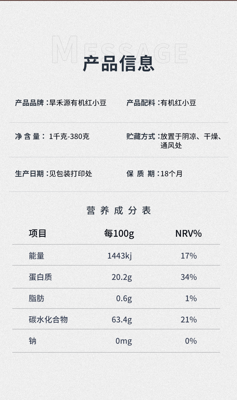 旱禾源敖汉有机红小豆粗粮杂粮 380g/1000g