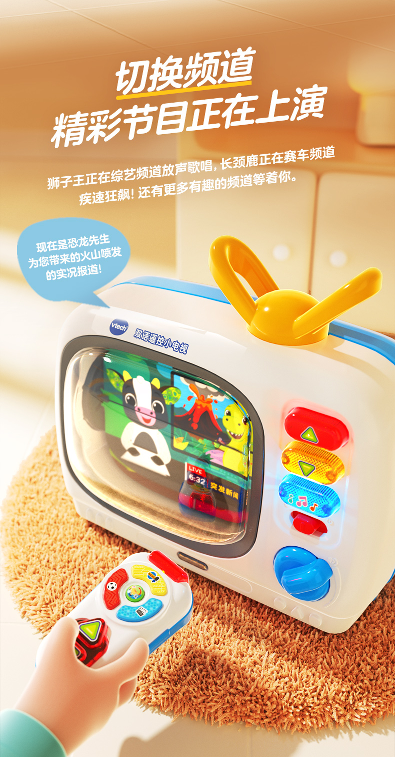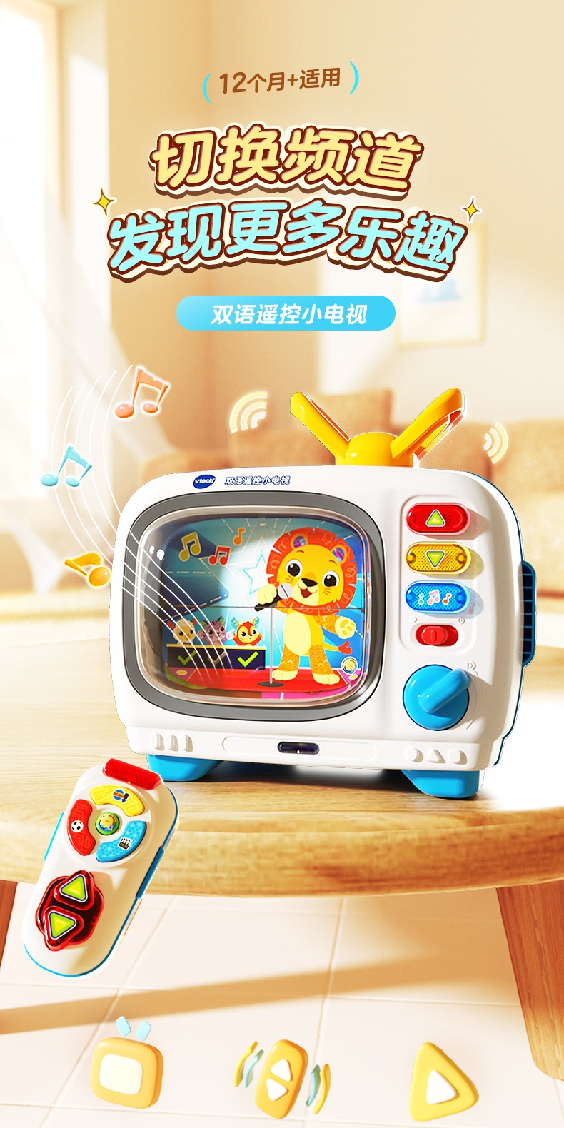 伟易达新款双语遥控小电视宝宝早教仿真过家家复古玩具儿童礼物
