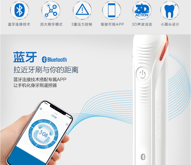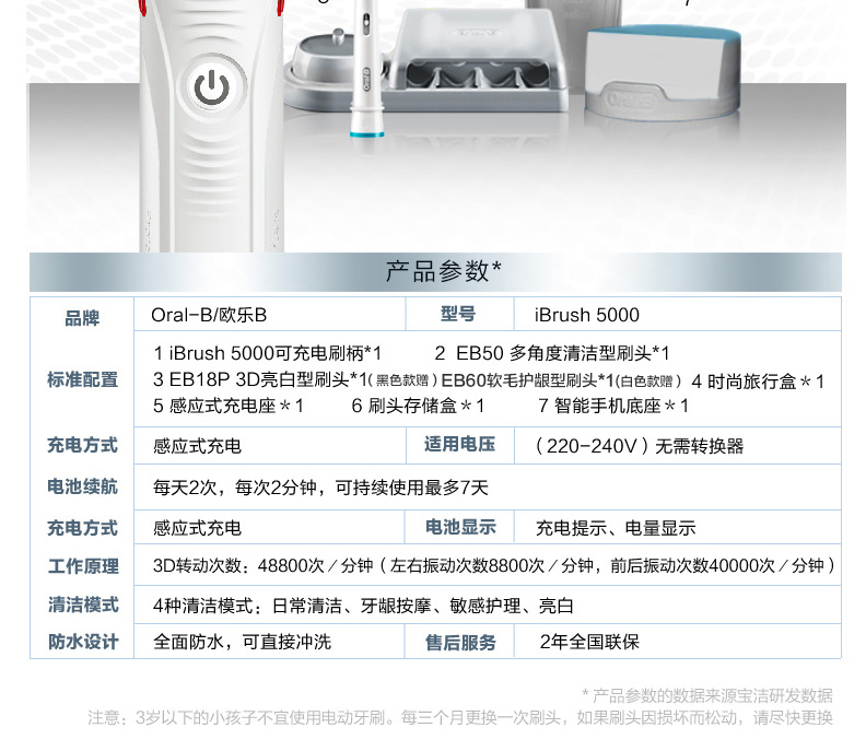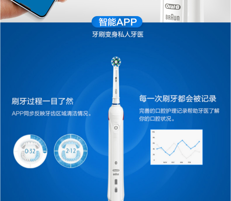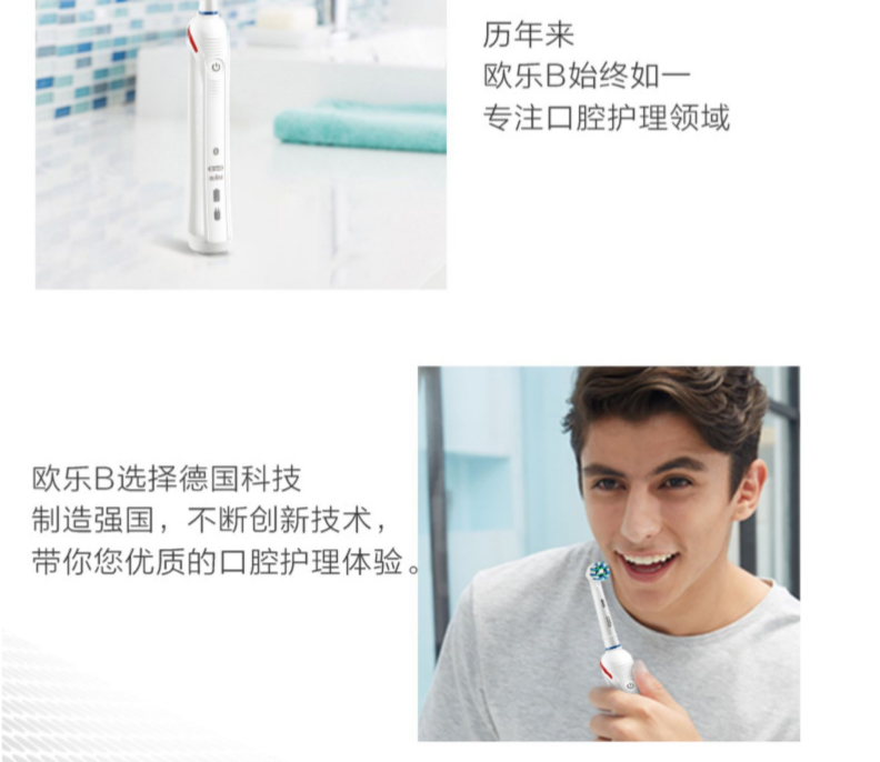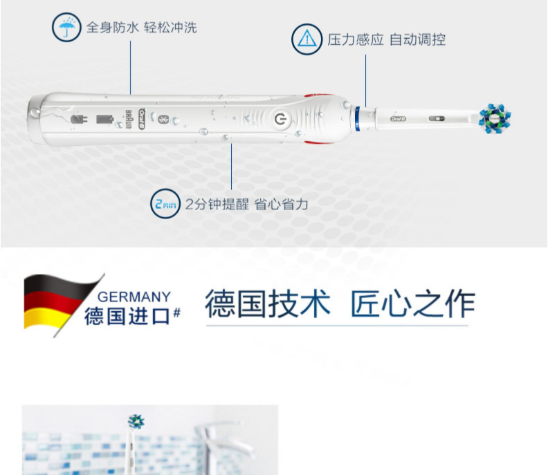 博朗Oral-b/欧乐b电动牙刷成人充电式3D声波蓝牙智能P5000白色