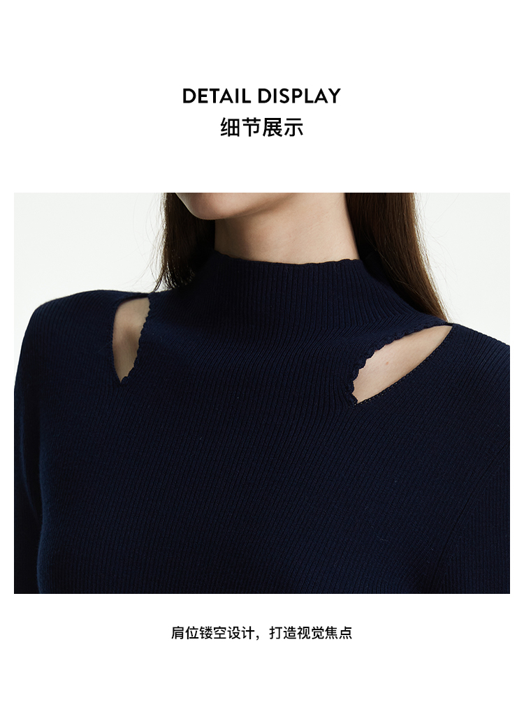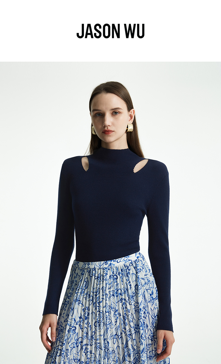 【JASON WU】新款高级设计感条纹时尚双色一字领套头上衣毛衫毛针织衫