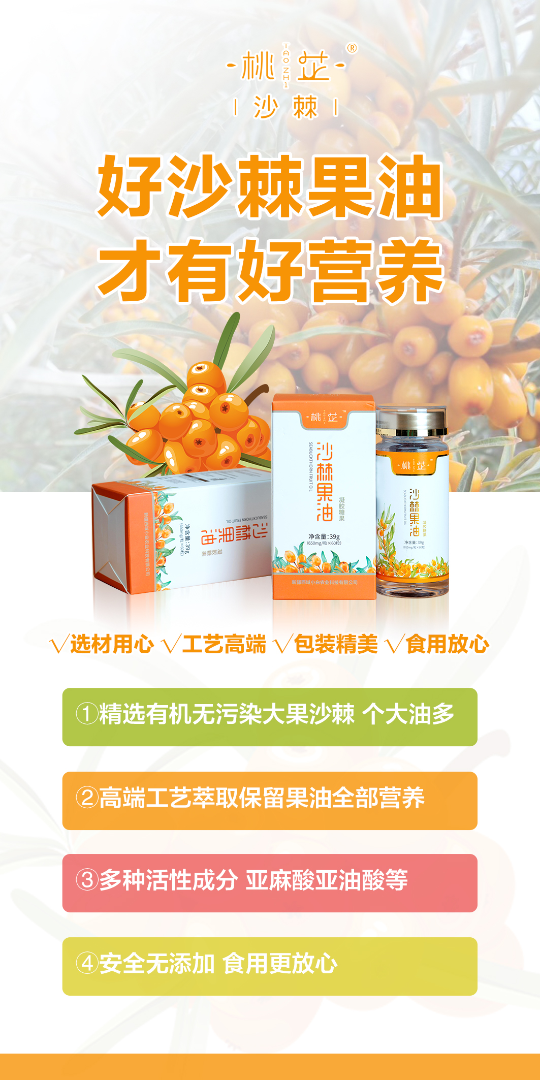 【配料】夹心:沙棘果油