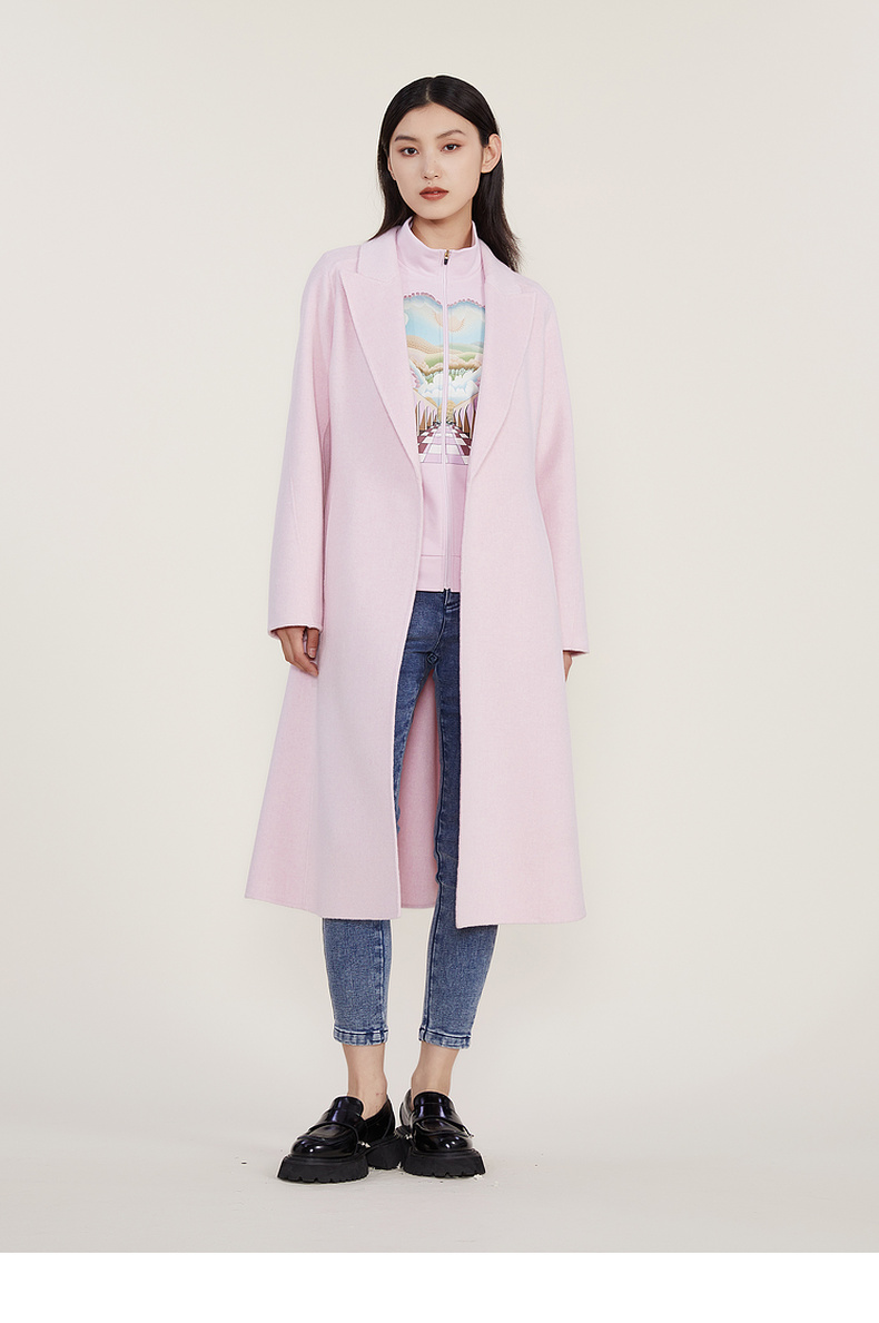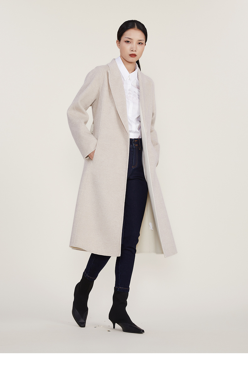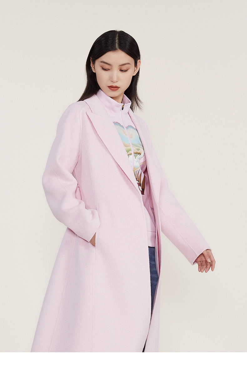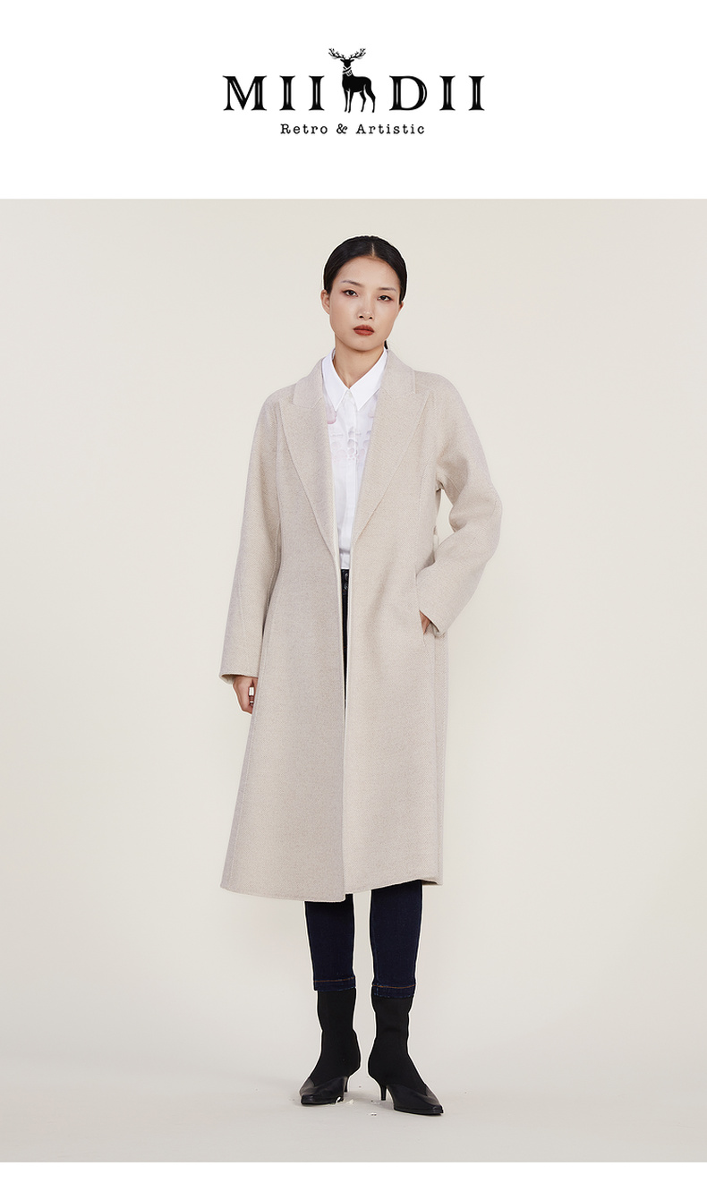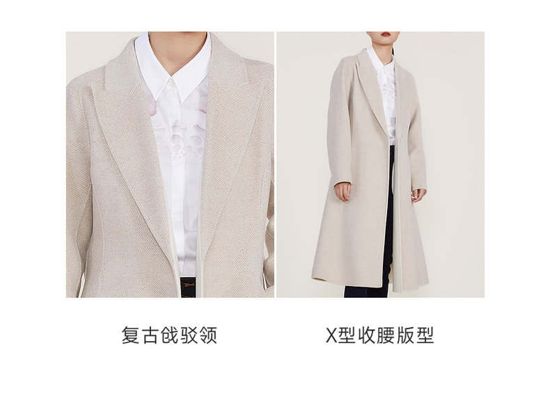 谜底2022冬季新款X型长款毛呢大衣女西装领纯色气质时尚224MD1647