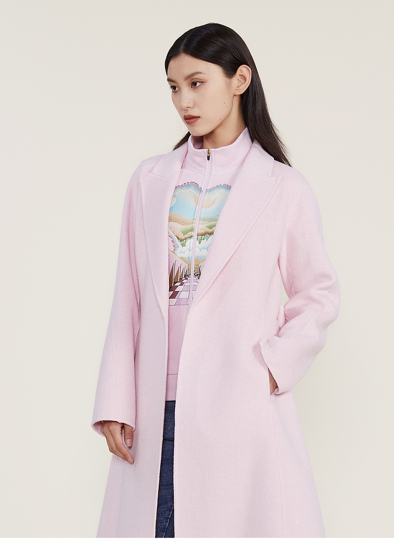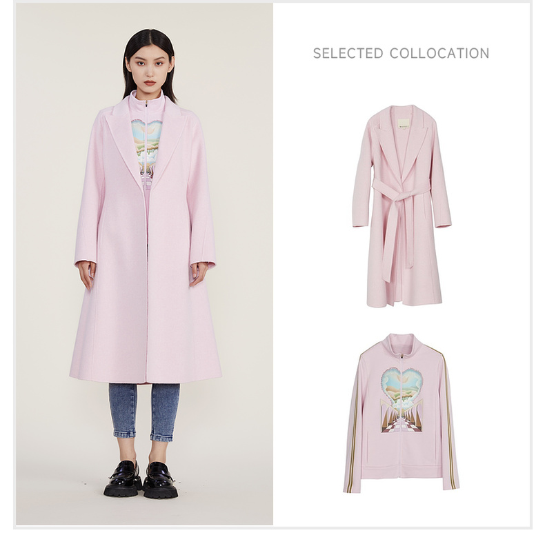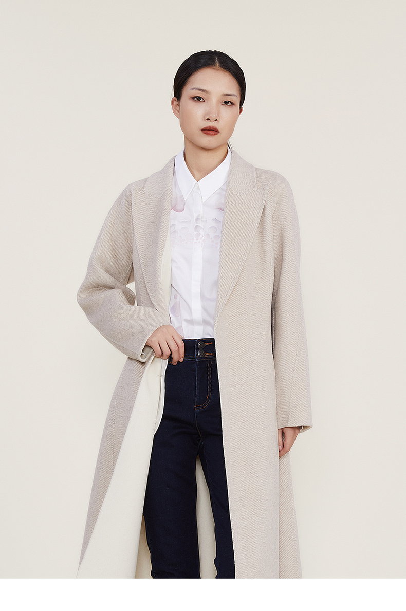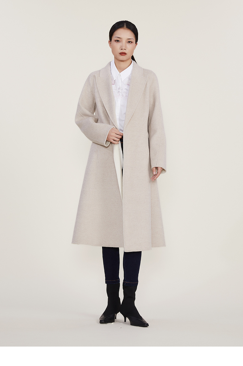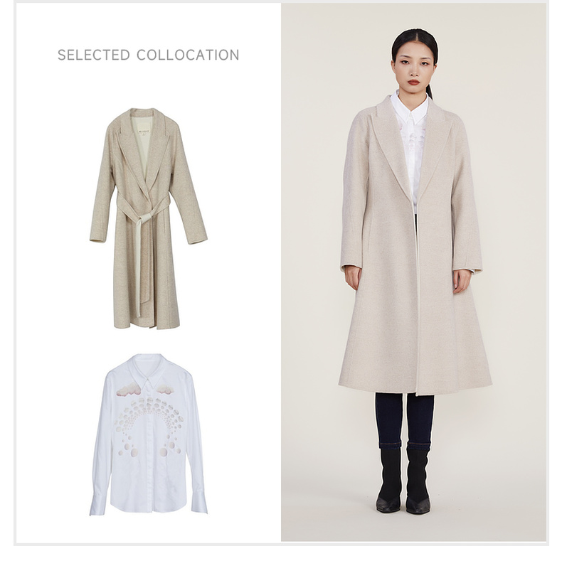 谜底2022冬季新款X型长款毛呢大衣女西装领纯色气质时尚224MD1647