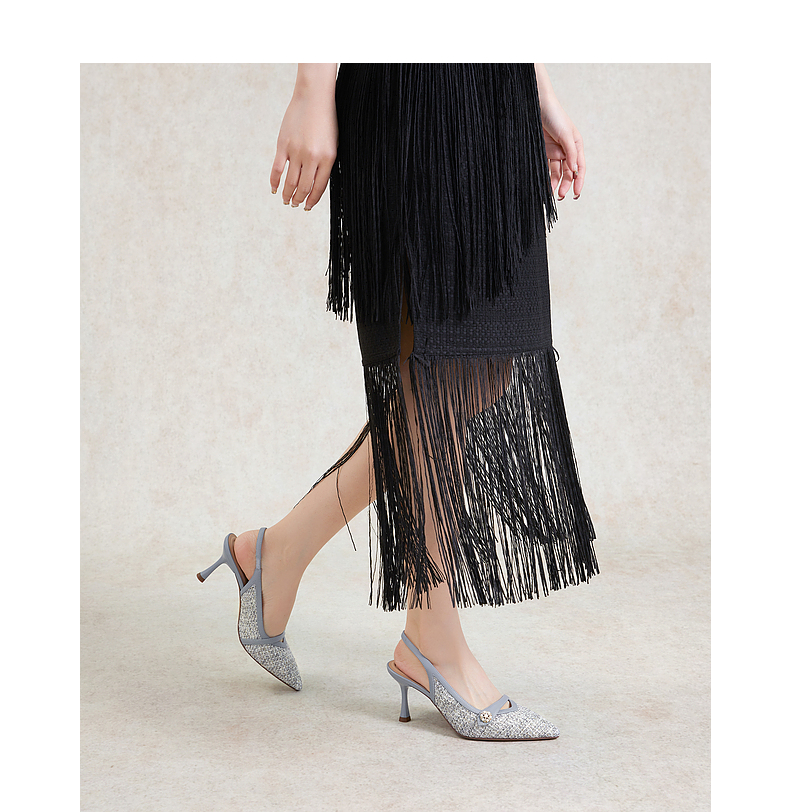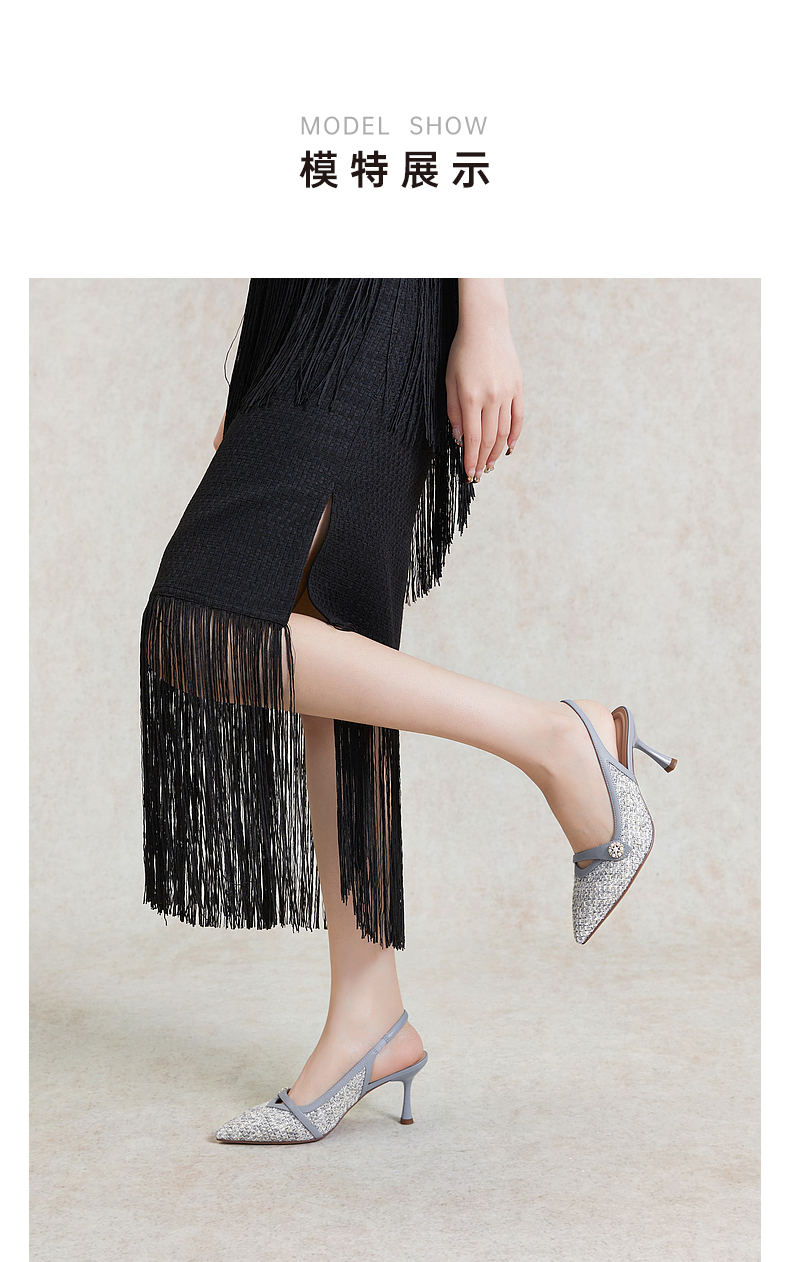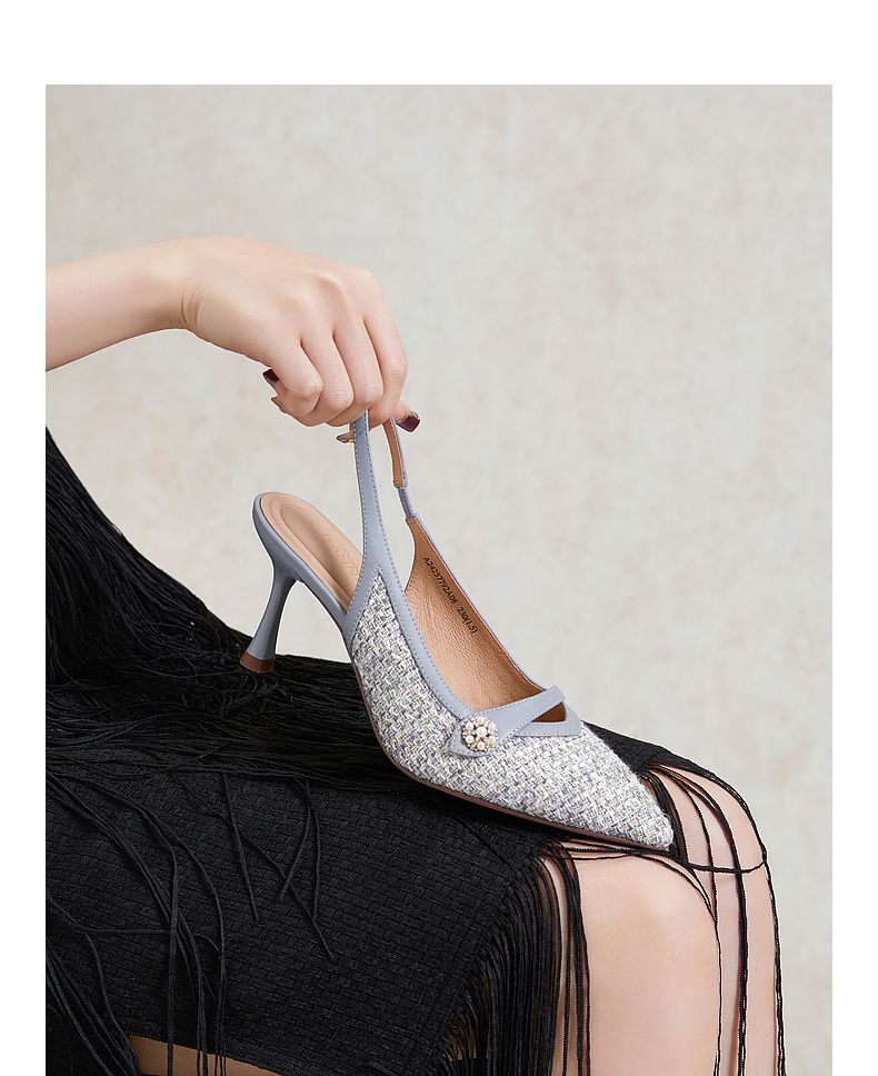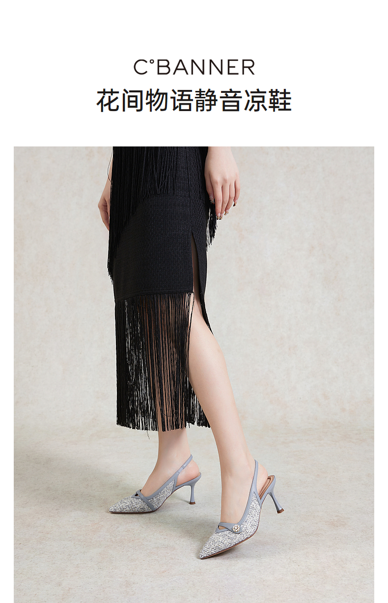 【静音系列】千百度小香风尖头高跟鞋夏季凉鞋A24257792