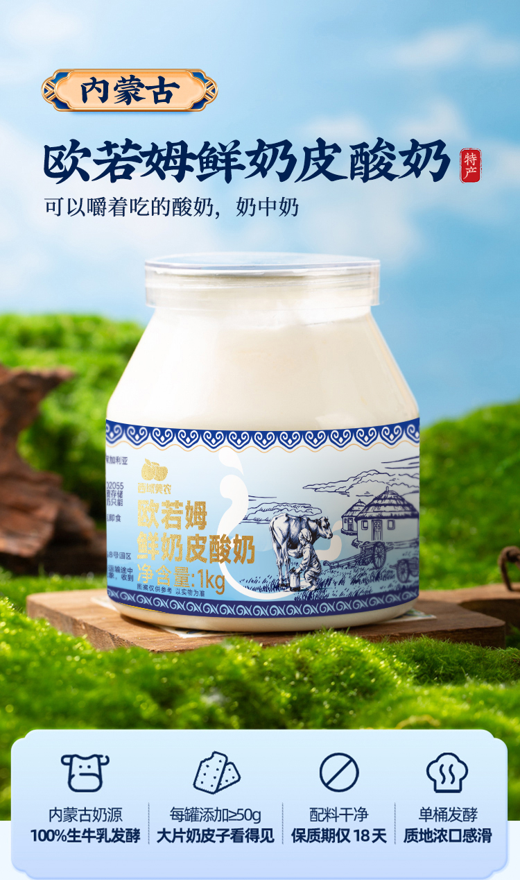 【杨博士甄选】西域美农欧若姆鲜奶皮子酸奶 570g/1000g (有蔗糖/无蔗糖)内蒙酸奶可以嚼着吃的老酸奶
