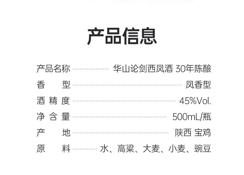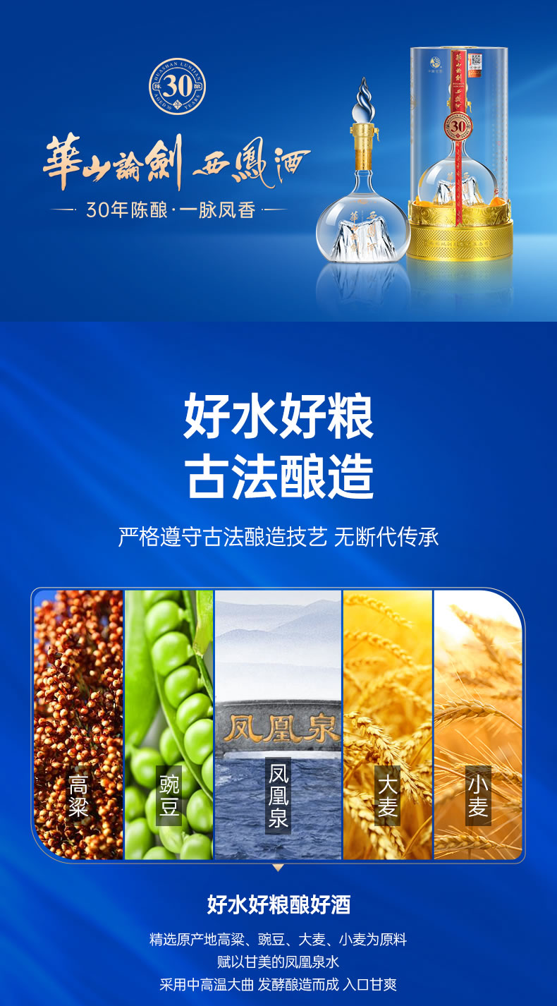 华山论剑西凤酒30年45度陈酿500ml/瓶 凤香型粮食低度白酒
