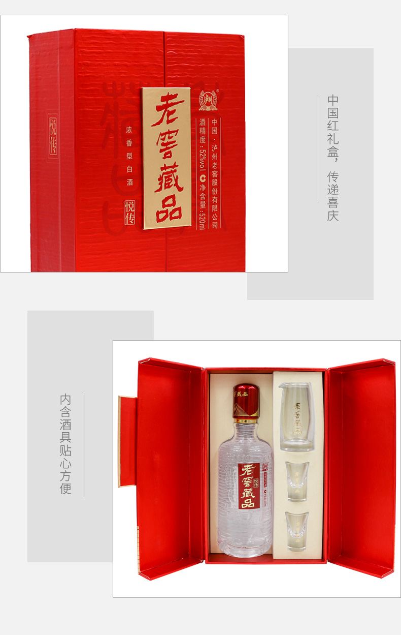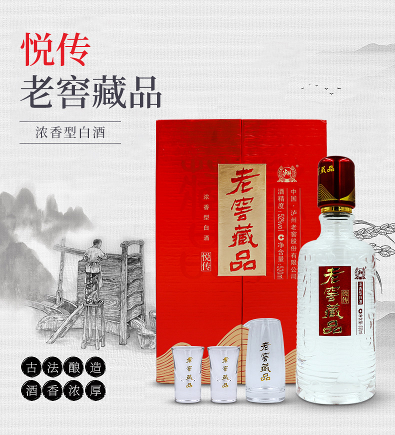【地道川味组合】老窖藏品窖响42度 520ml*6*2箱+老窖藏品悦传 52度 520ml+酒具 泸州老窖官方旗舰店