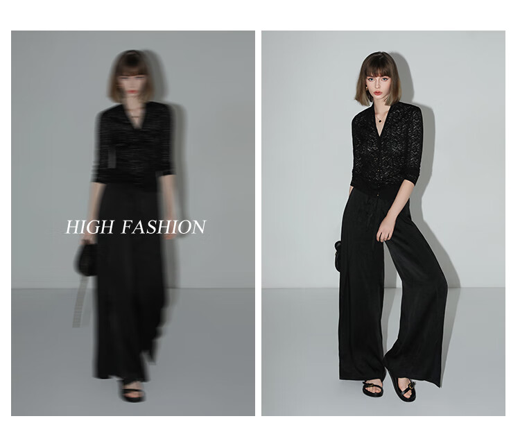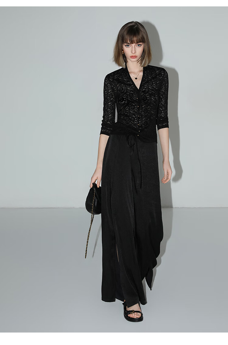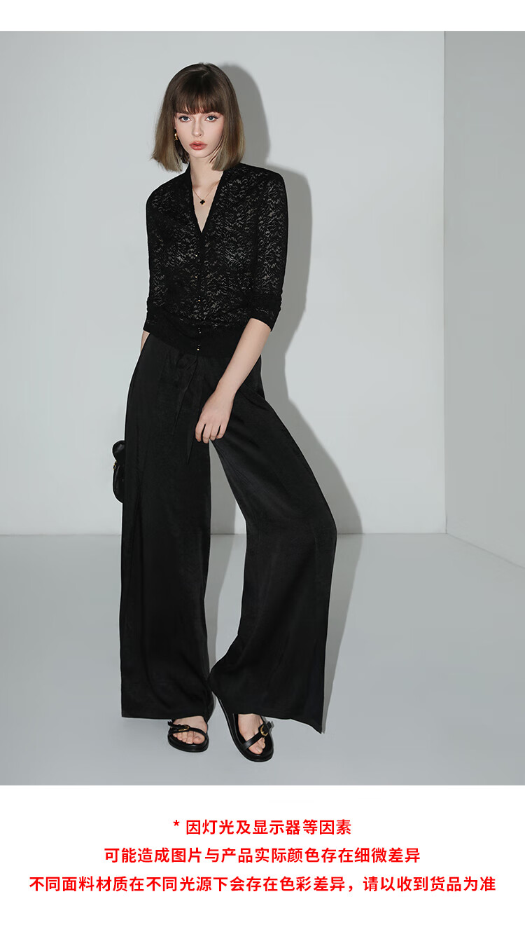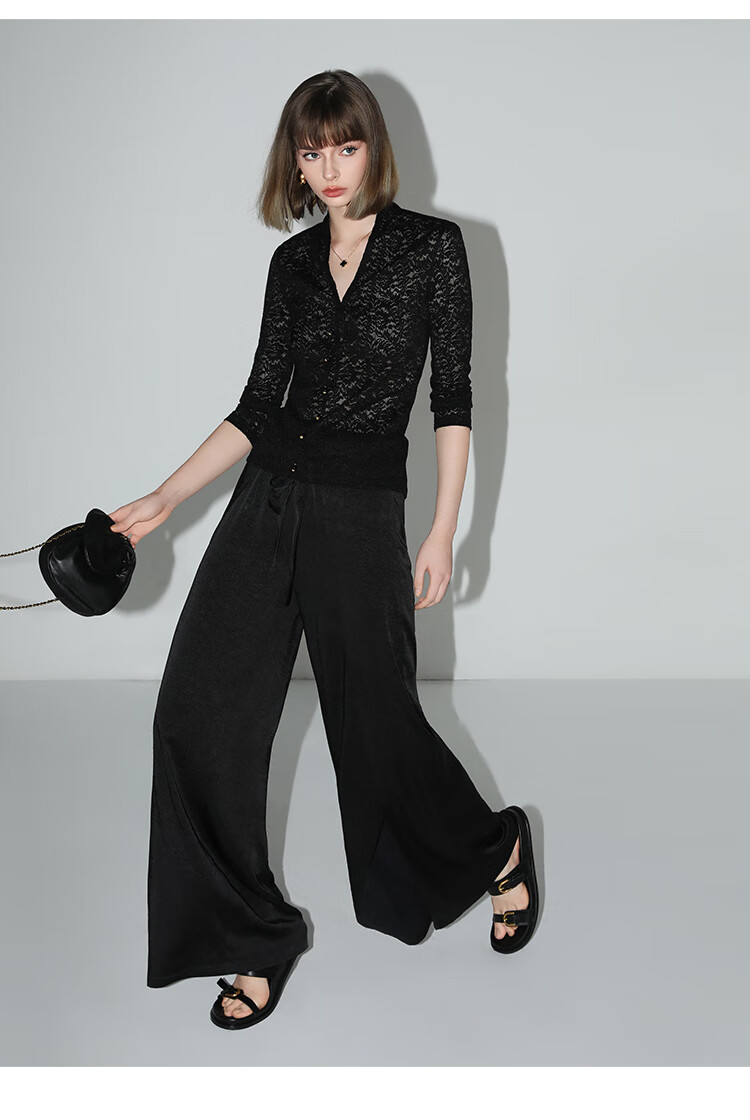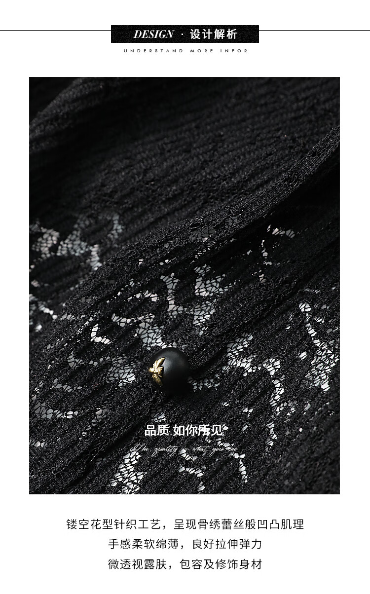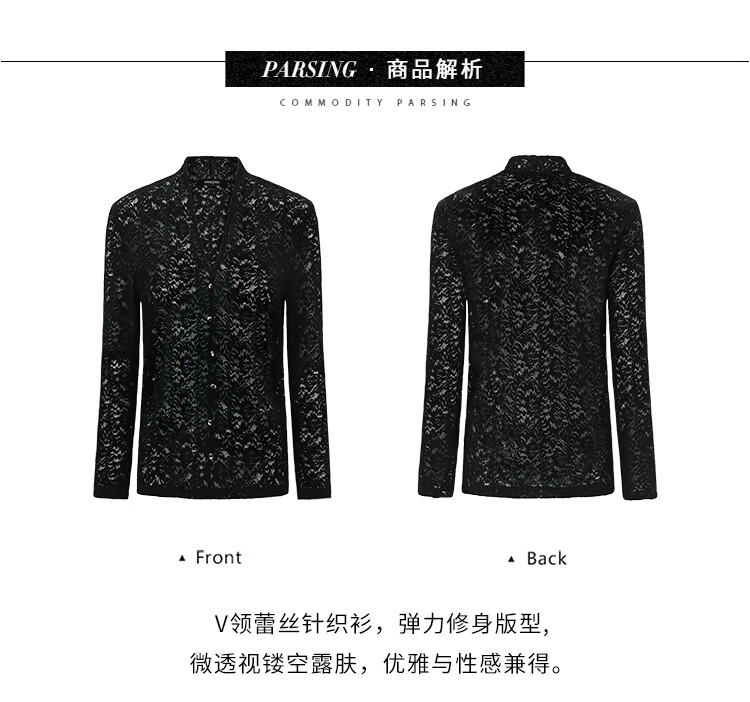 COCOBELLA优雅微透视镂空蕾丝衬衫女深V领长袖针织衫NLC55B