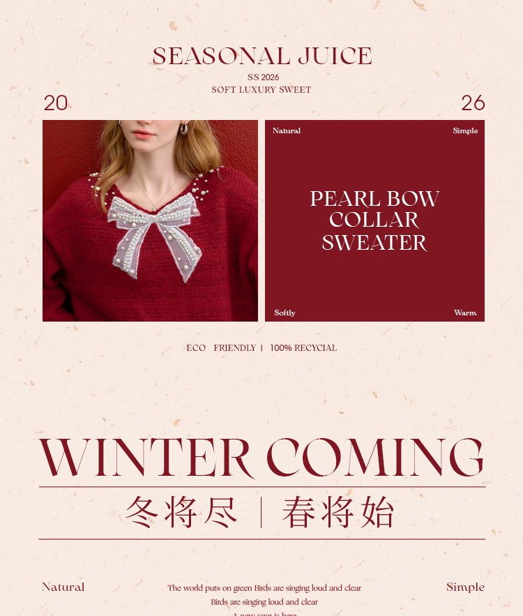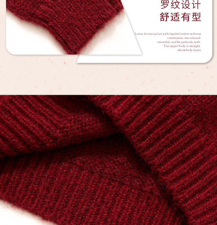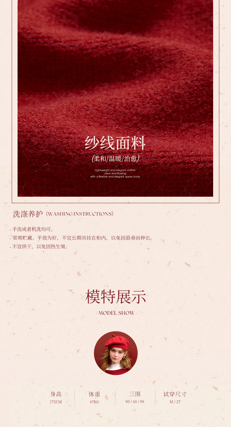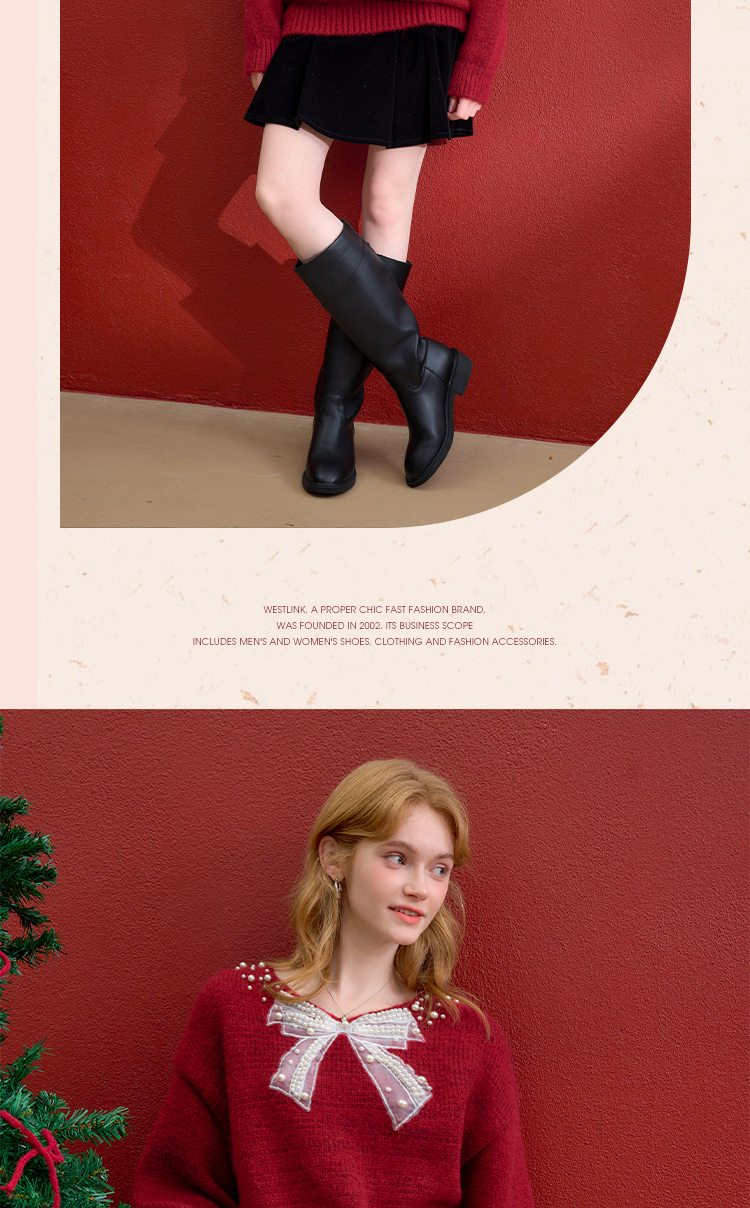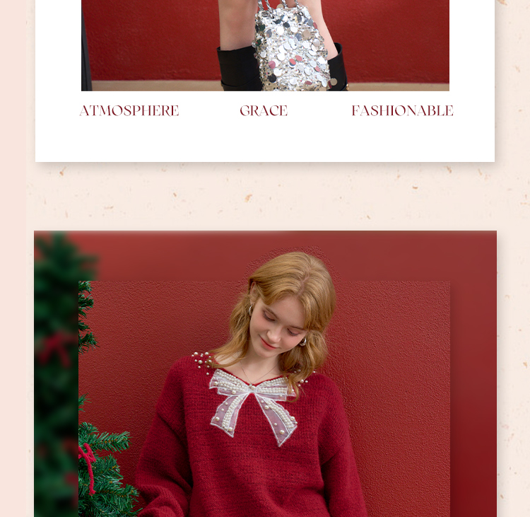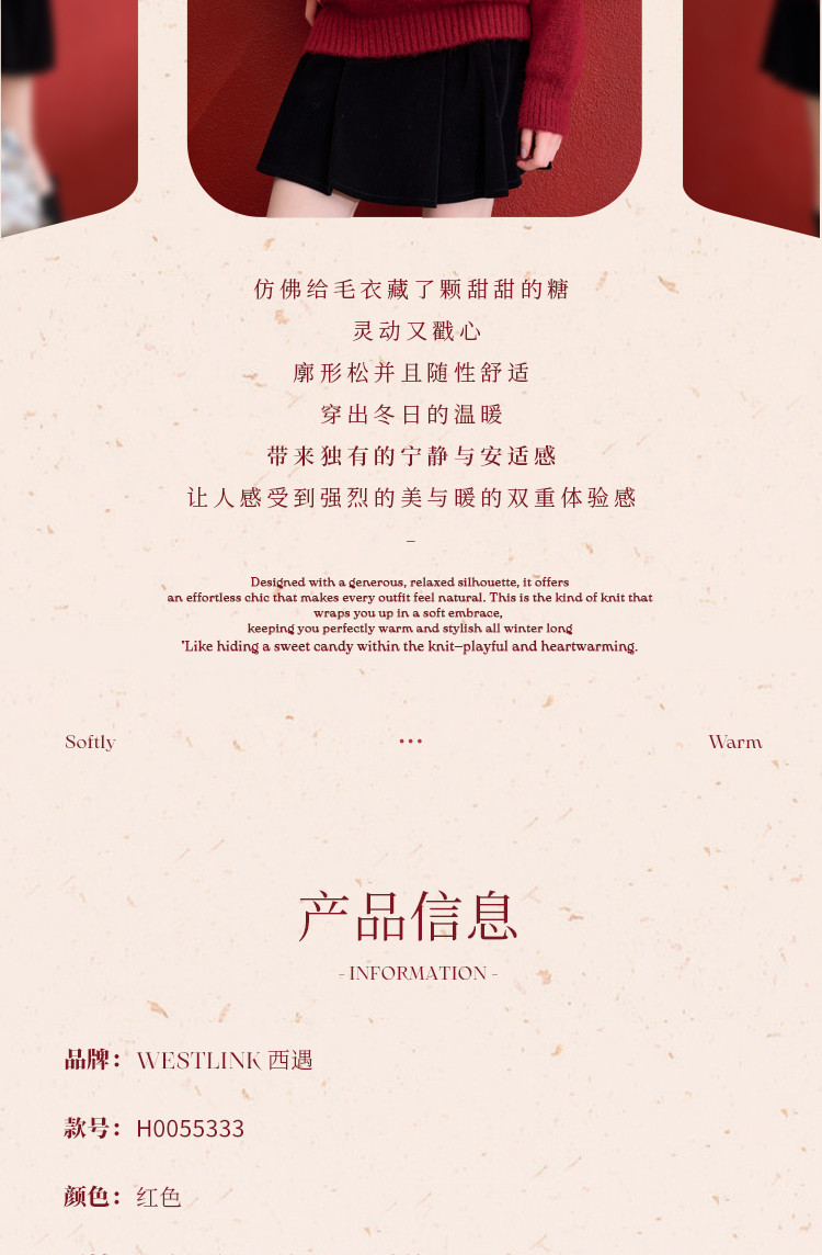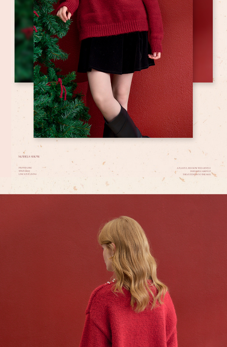 西遇钉珠蝴蝶结红色毛衣女冬季新款V领氛围感套头针织衫H0055333
