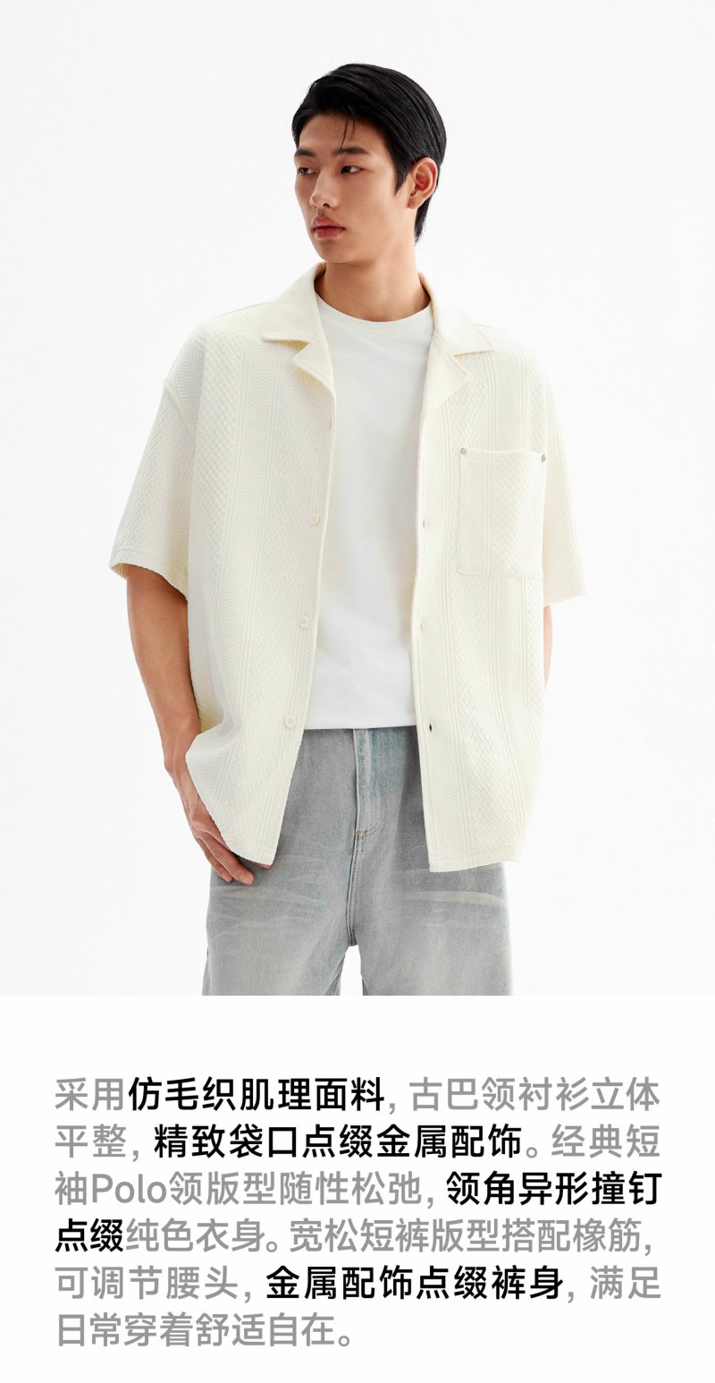 CHINISM赤尘 古巴领短袖衬衫男美式休闲夏季新款衬衣简约宽松上衣