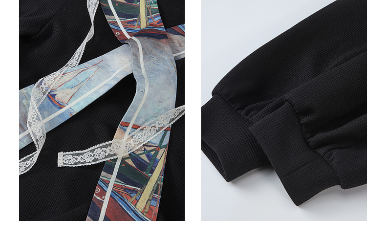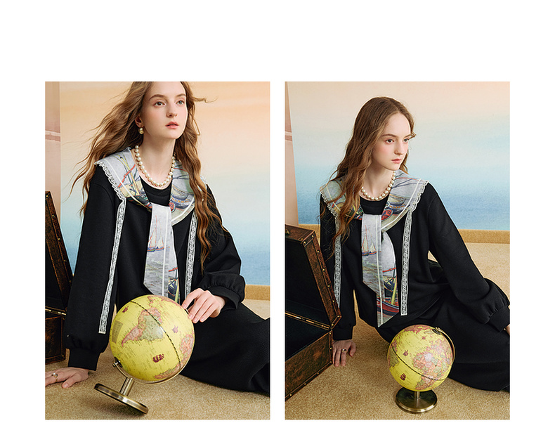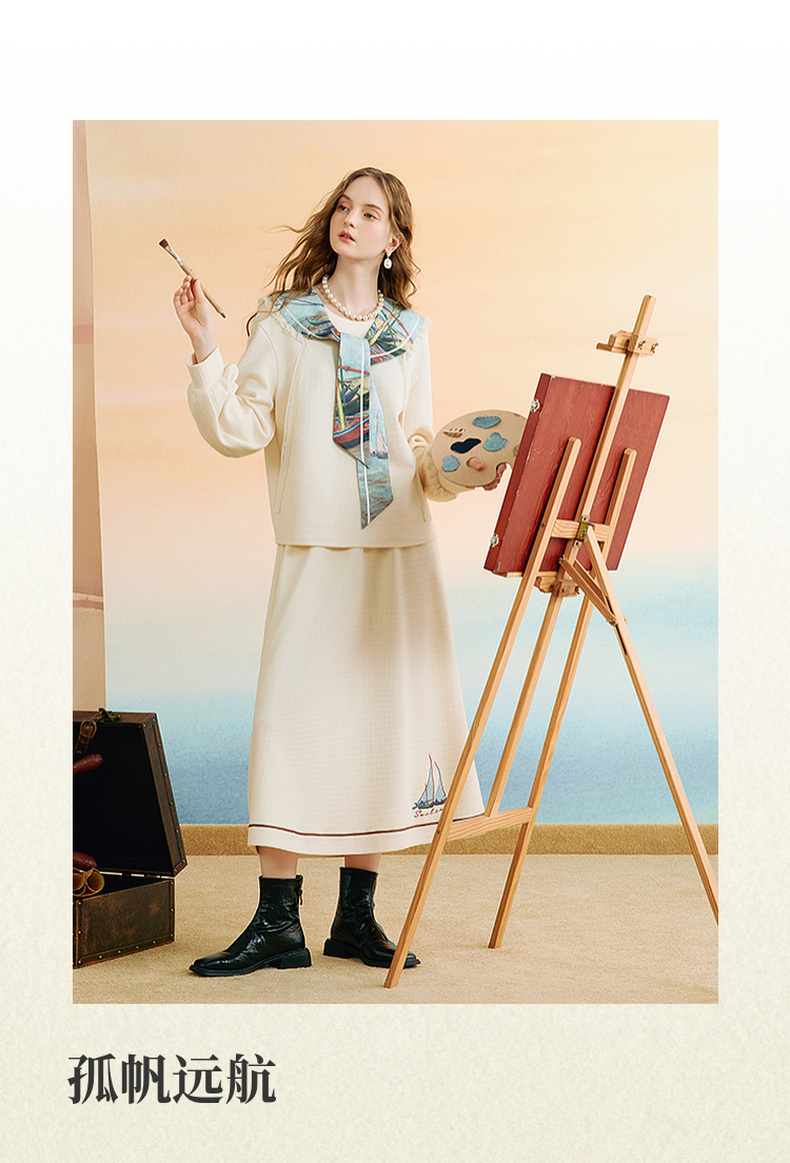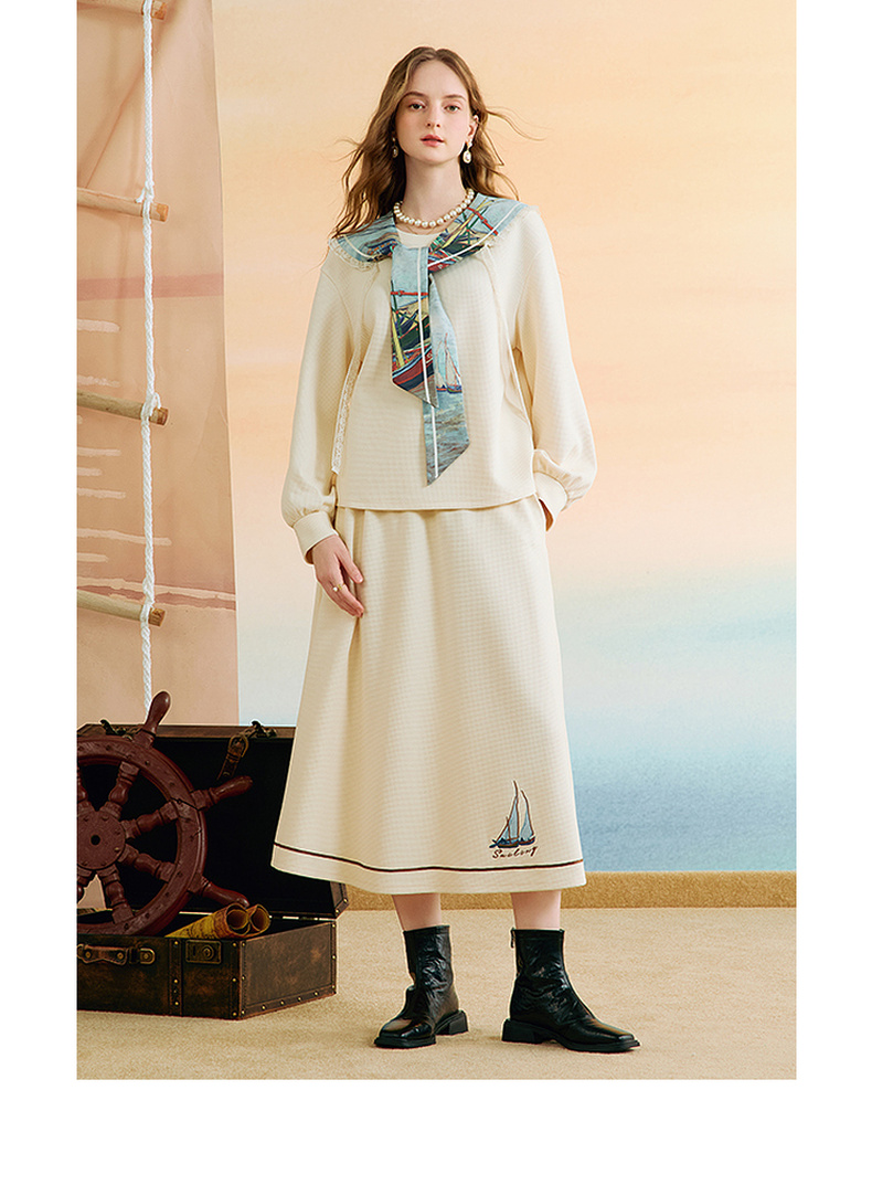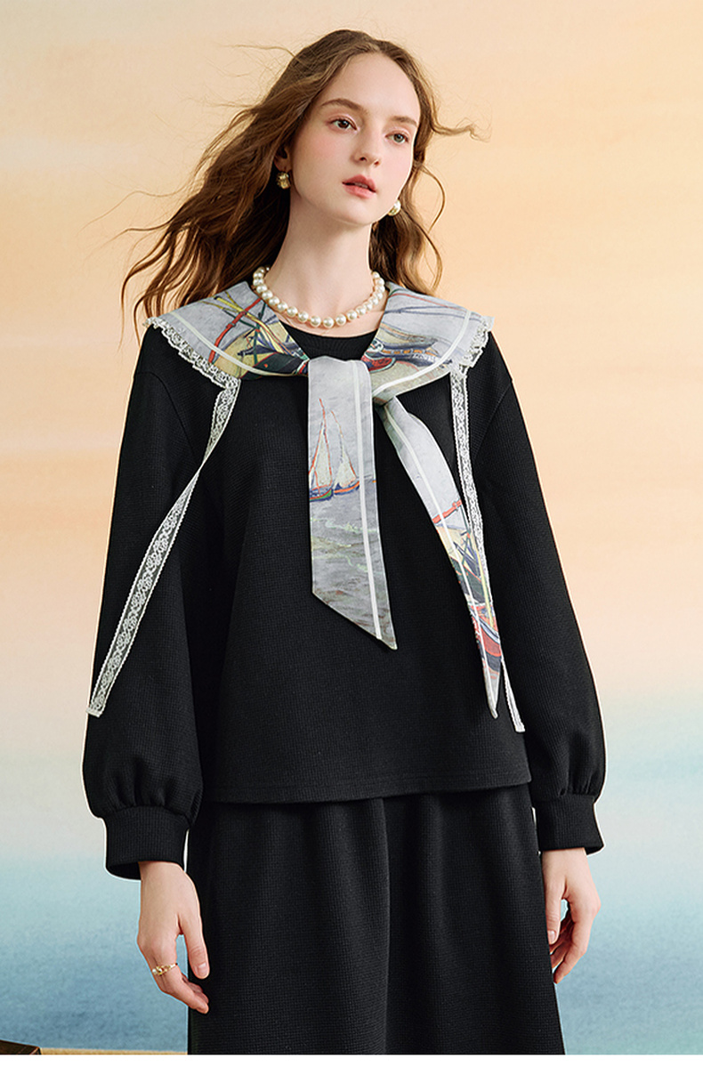两三事梵高文艺孤帆远航2025秋季新款印花海军领刺绣两件套女套装