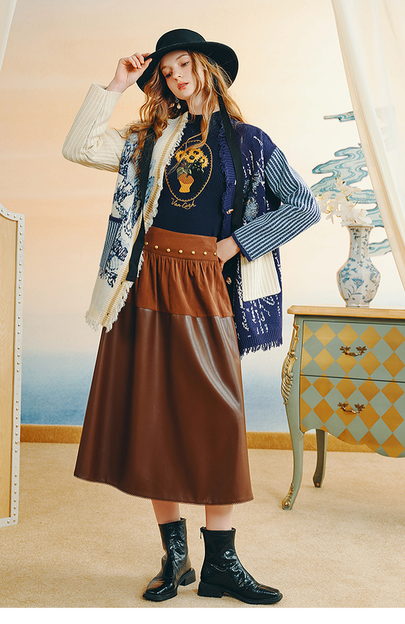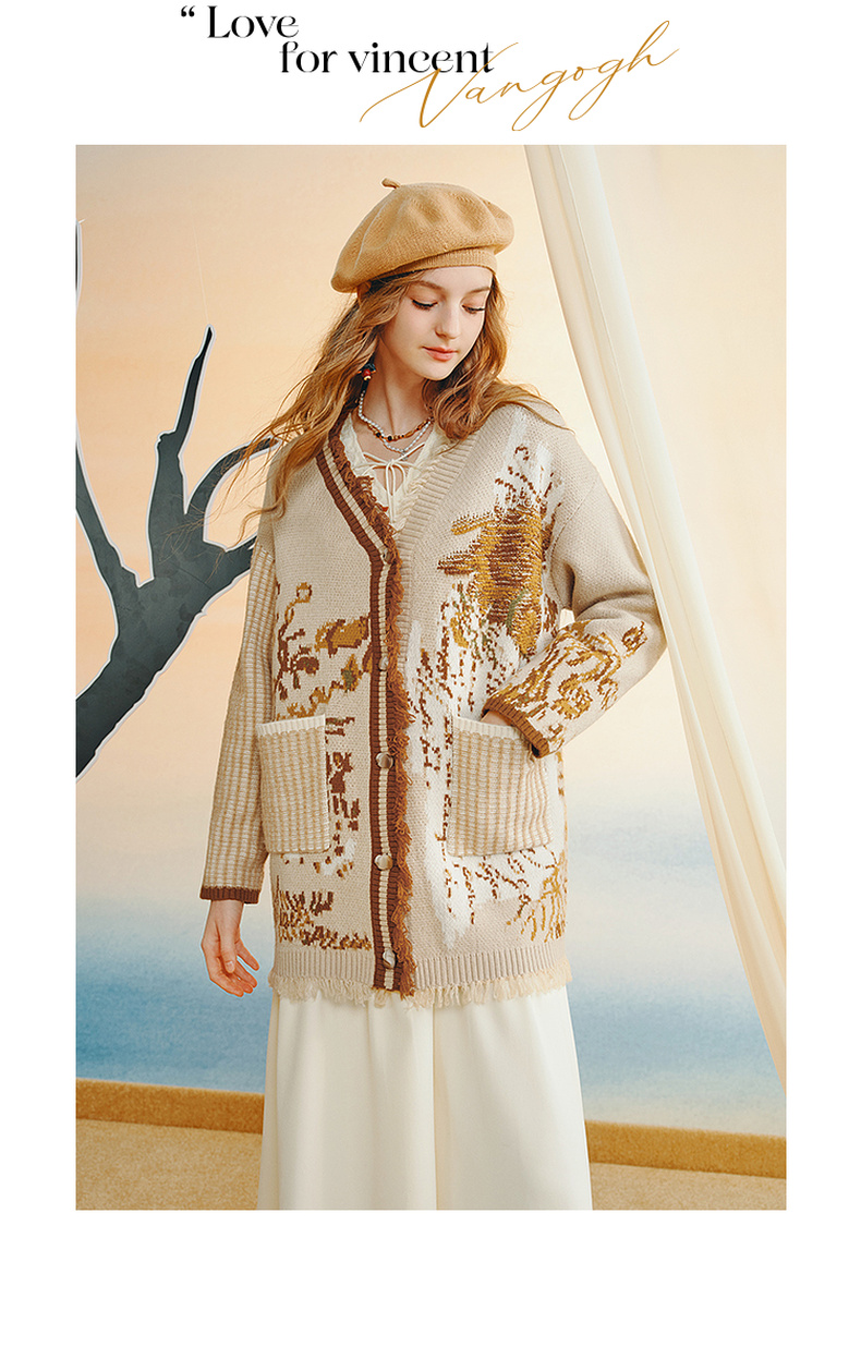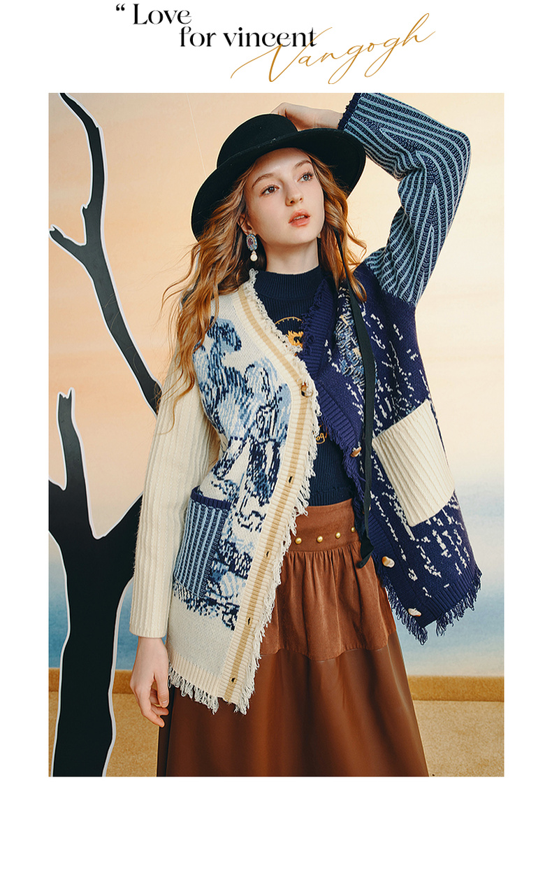 两三事梵高艺术灿烂与偏执秋复古开衫毛衣外套女慵懒风设计感小众