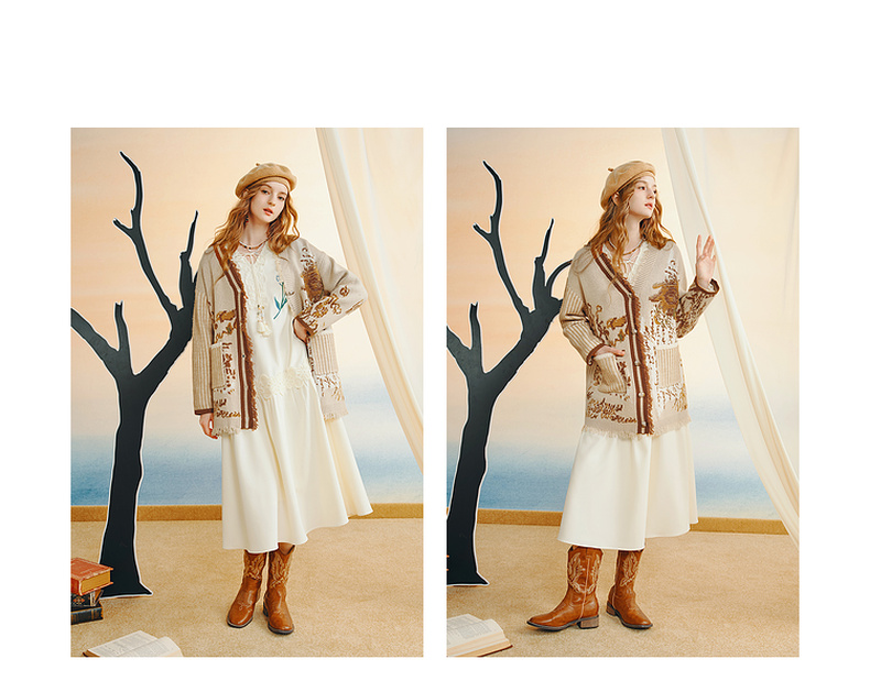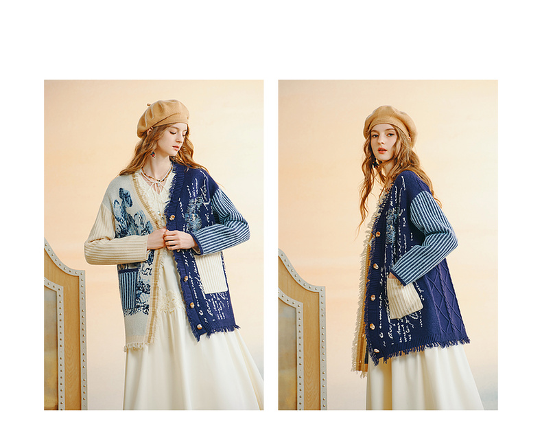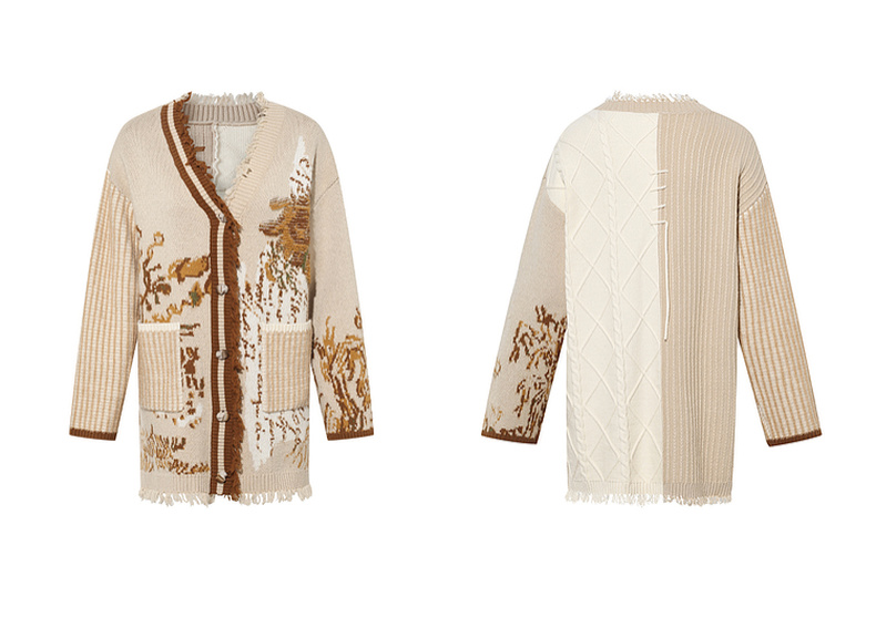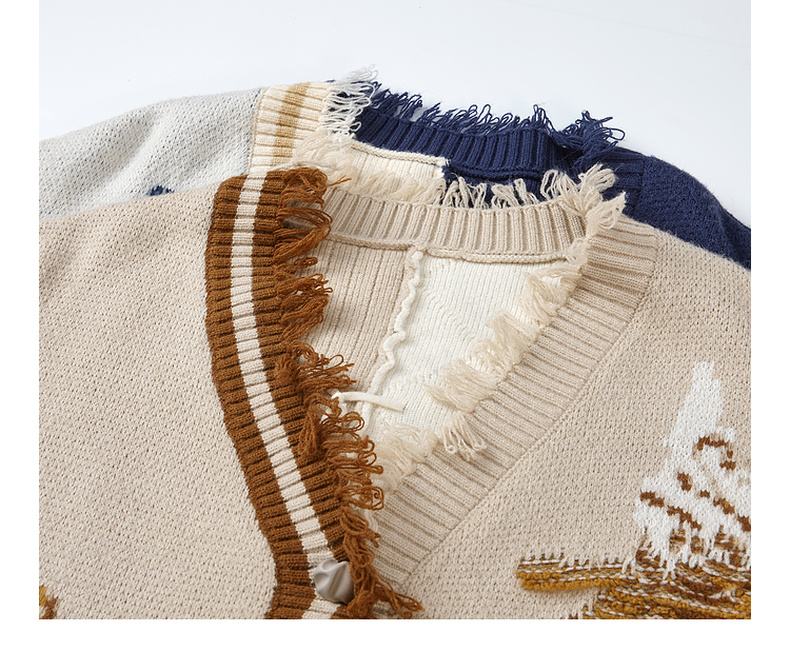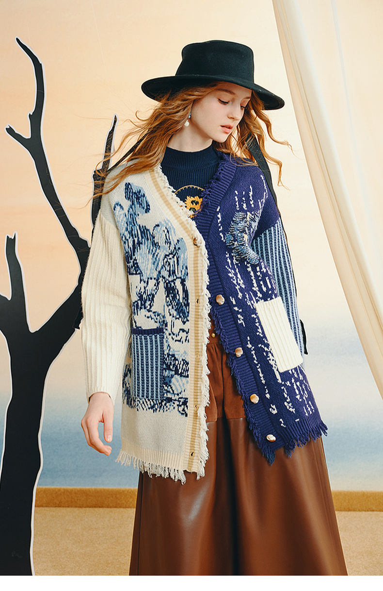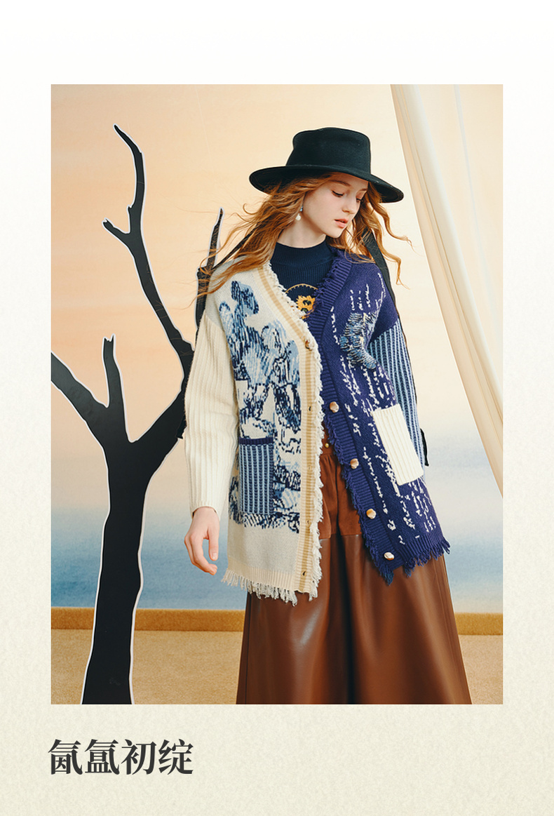 两三事梵高文艺 氤氲初绽 2025秋季新款复古流苏边花色毛衣开衫女