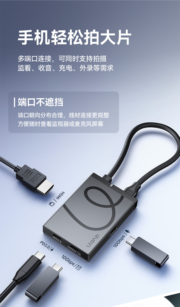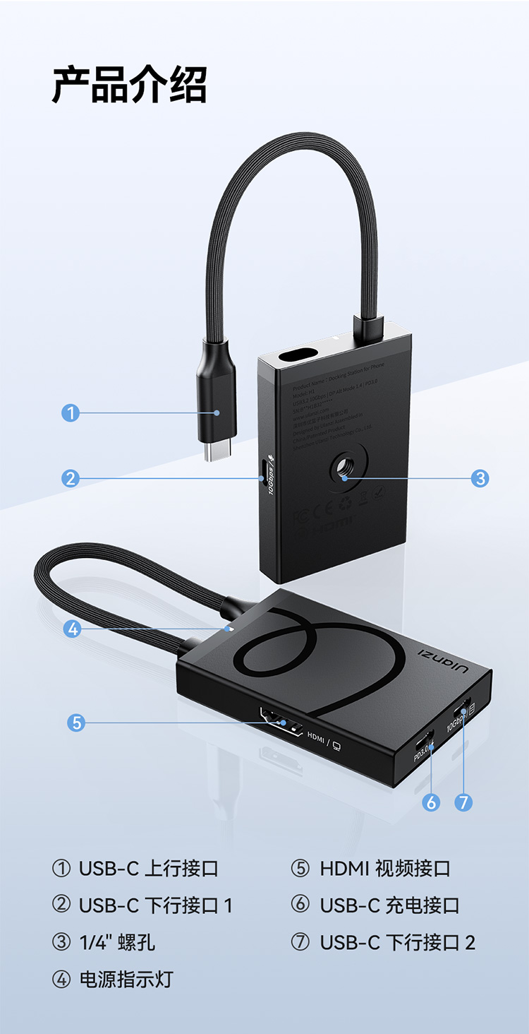 Ulanzi优篮子H1手机摄影拓展坞typec扩展hdmi投屏转换usb分线器集线器多功能接口转接头适用于电脑iPad苹果16