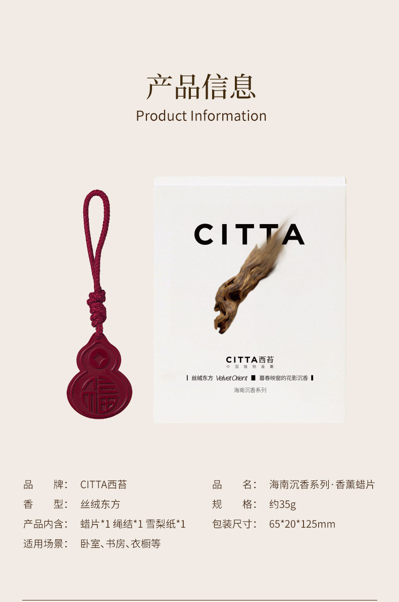 CITTA西苔 海南沉香系列香薰蜡片福禄葫芦蜡片衣柜挂件室内去味
