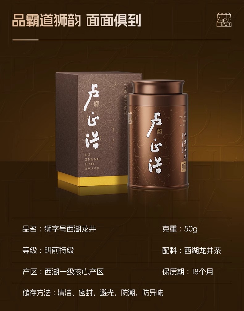 【2026年新茶】卢正浩狮字号听50克西湖龙井一级核心产区明前特级茶叶自己喝绿茶罐