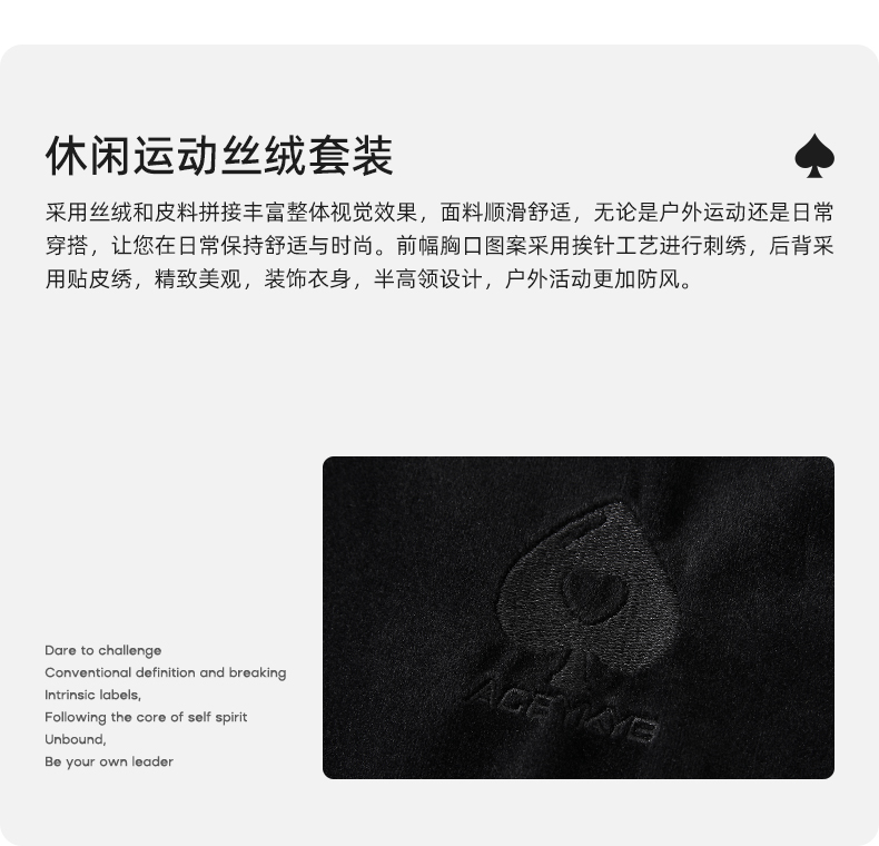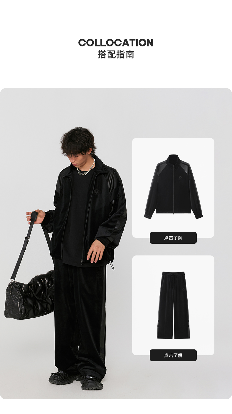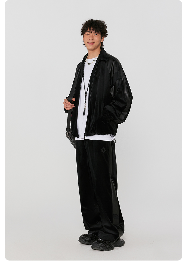 YKYB丝绒运动套装2025春新款中性复古设计感拼接外套休闲裤两件套