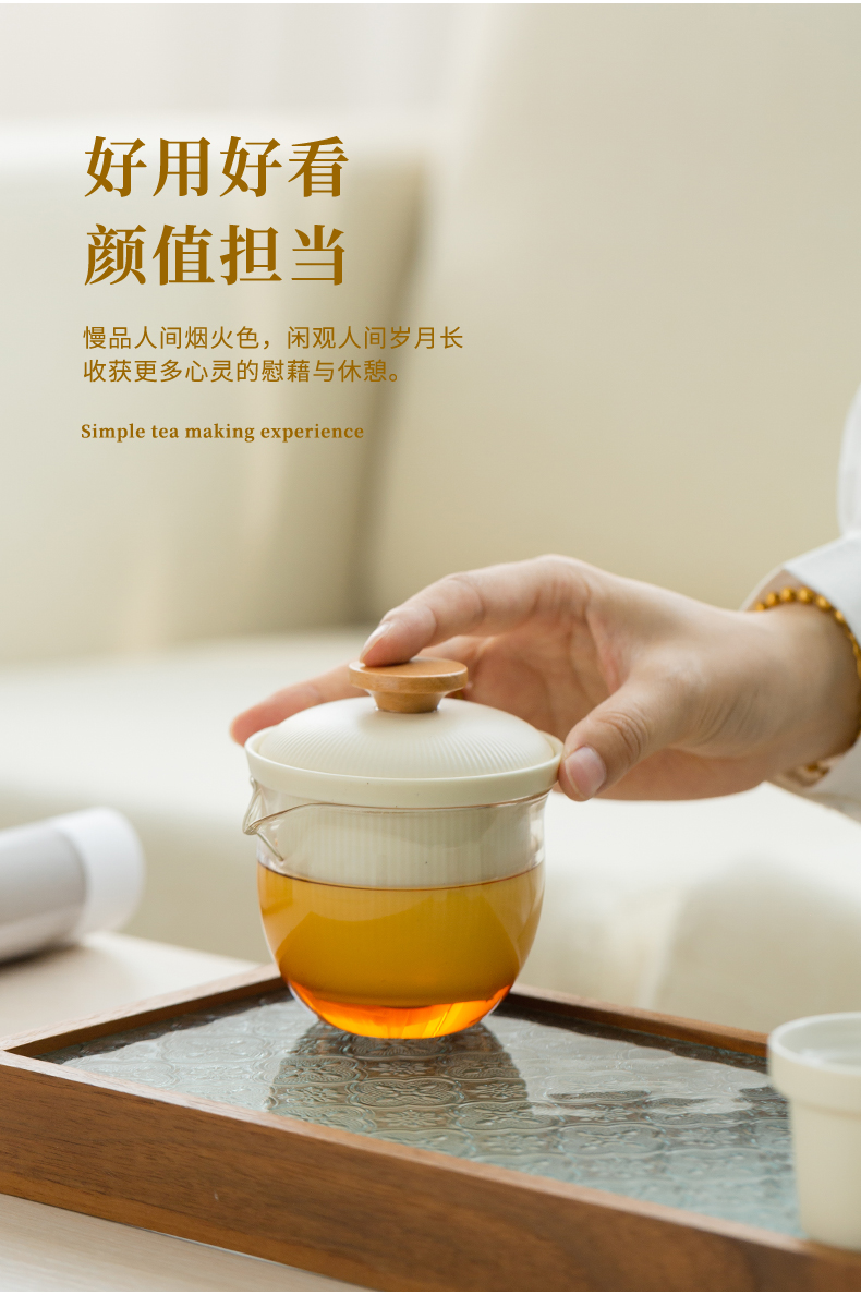 B-BFT2654沐月过滤快客二杯(榉木杯盖))礼盒套装-奶油黄