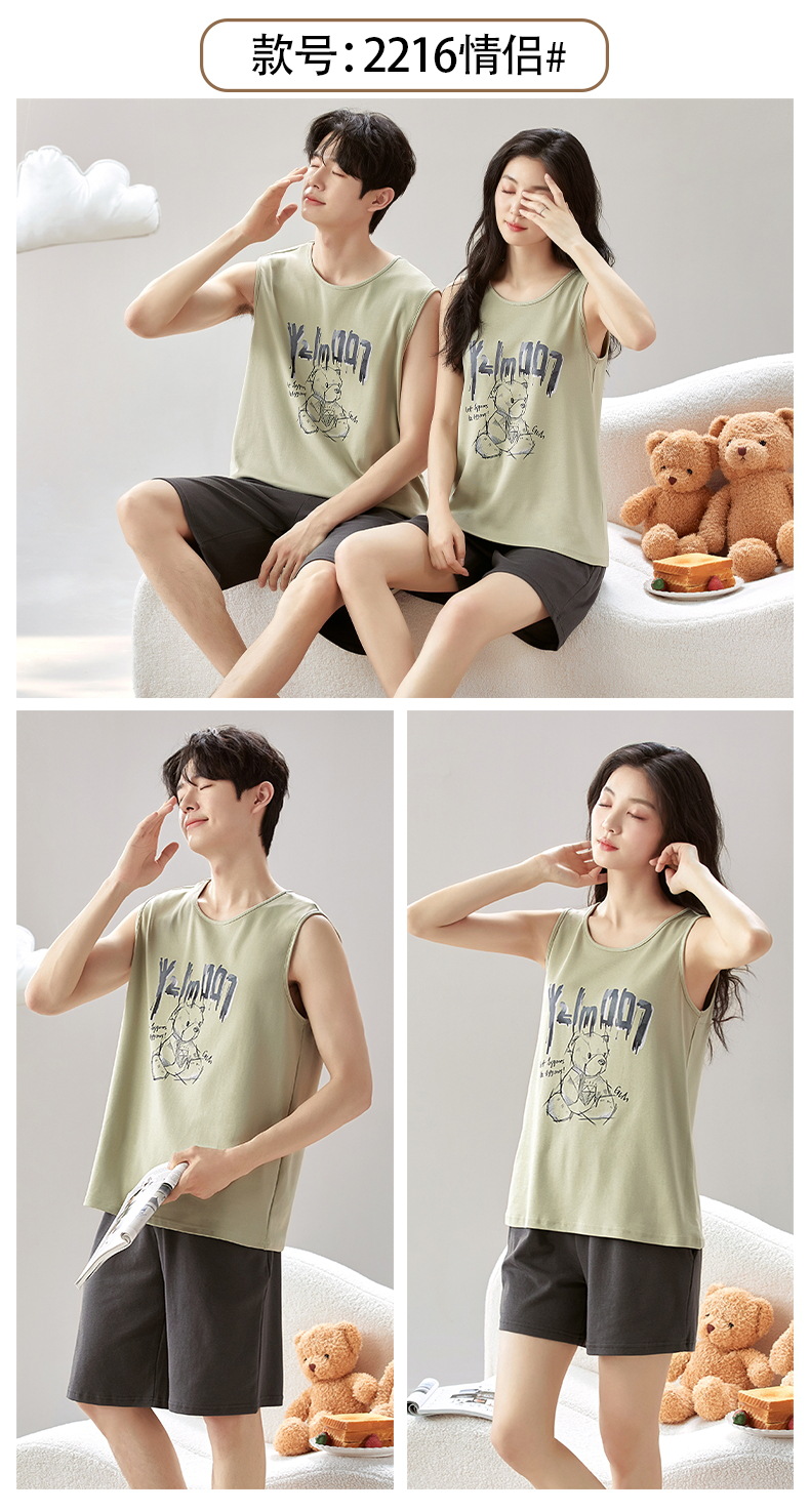 新款棉质睡衣女夏季甜美休闲吊带两件套无袖砍肩家居服夏天 商品图6