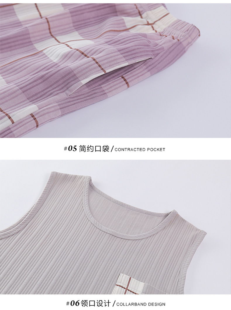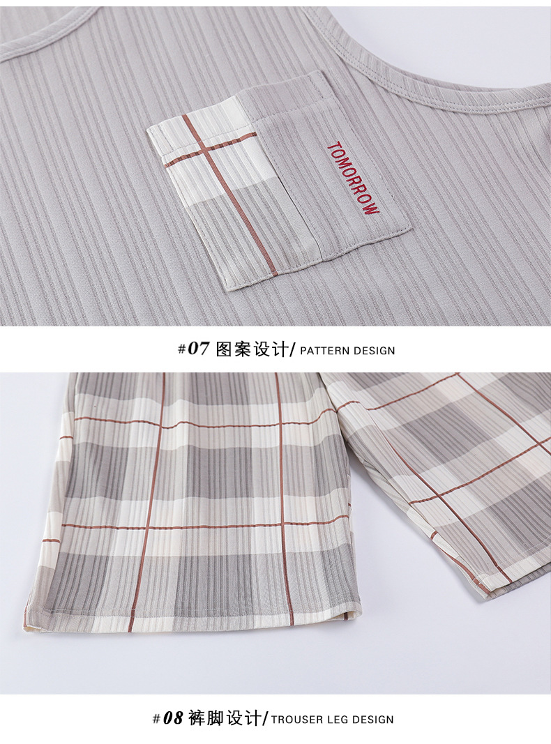 新款棉质睡衣女夏季甜美休闲吊带两件套无袖砍肩家居服夏天 商品图7