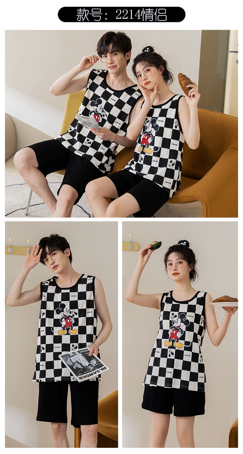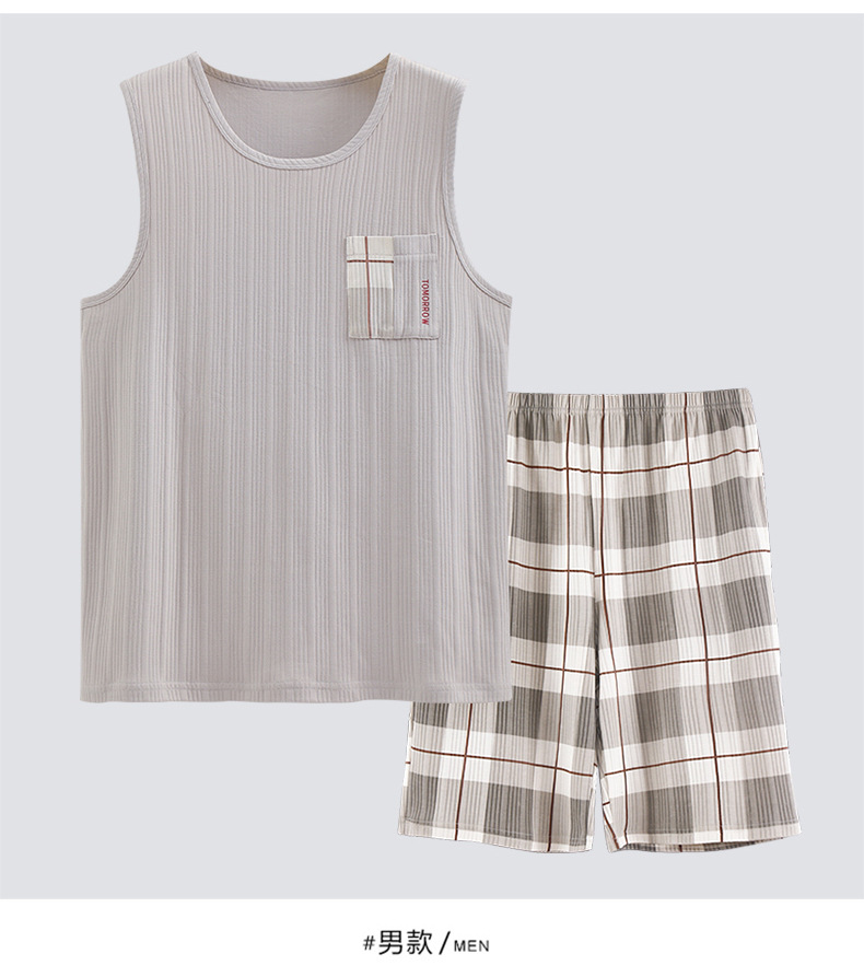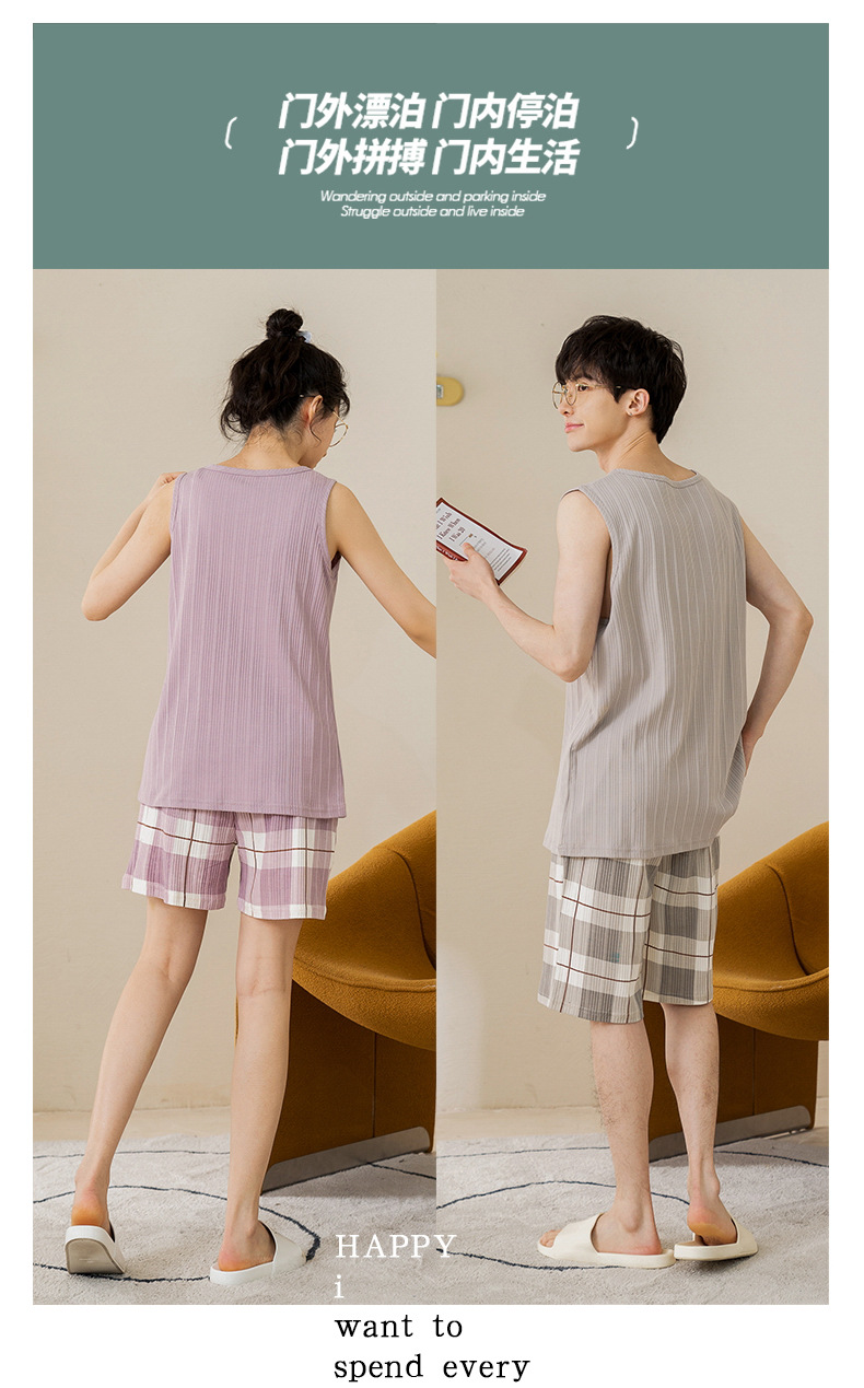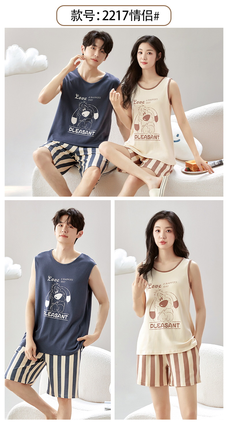 新款棉质睡衣女夏季甜美休闲吊带两件套无袖砍肩家居服夏天 商品图0