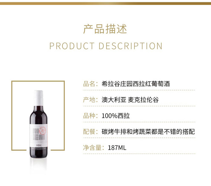 9.【限量9.9元秒杀】澳洲进口 希拉谷庄园西拉红葡萄酒 187ml*6