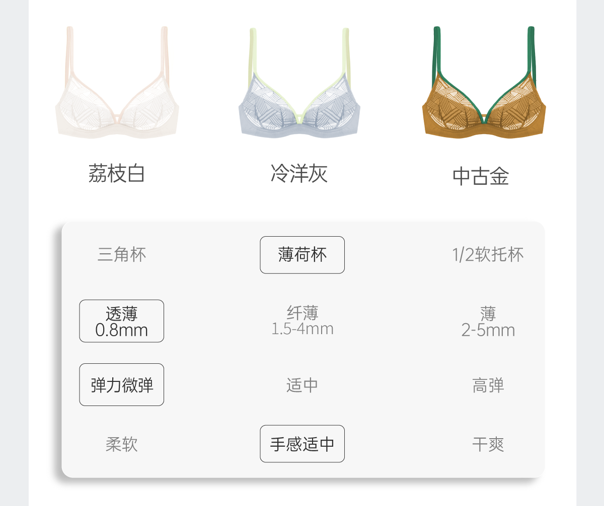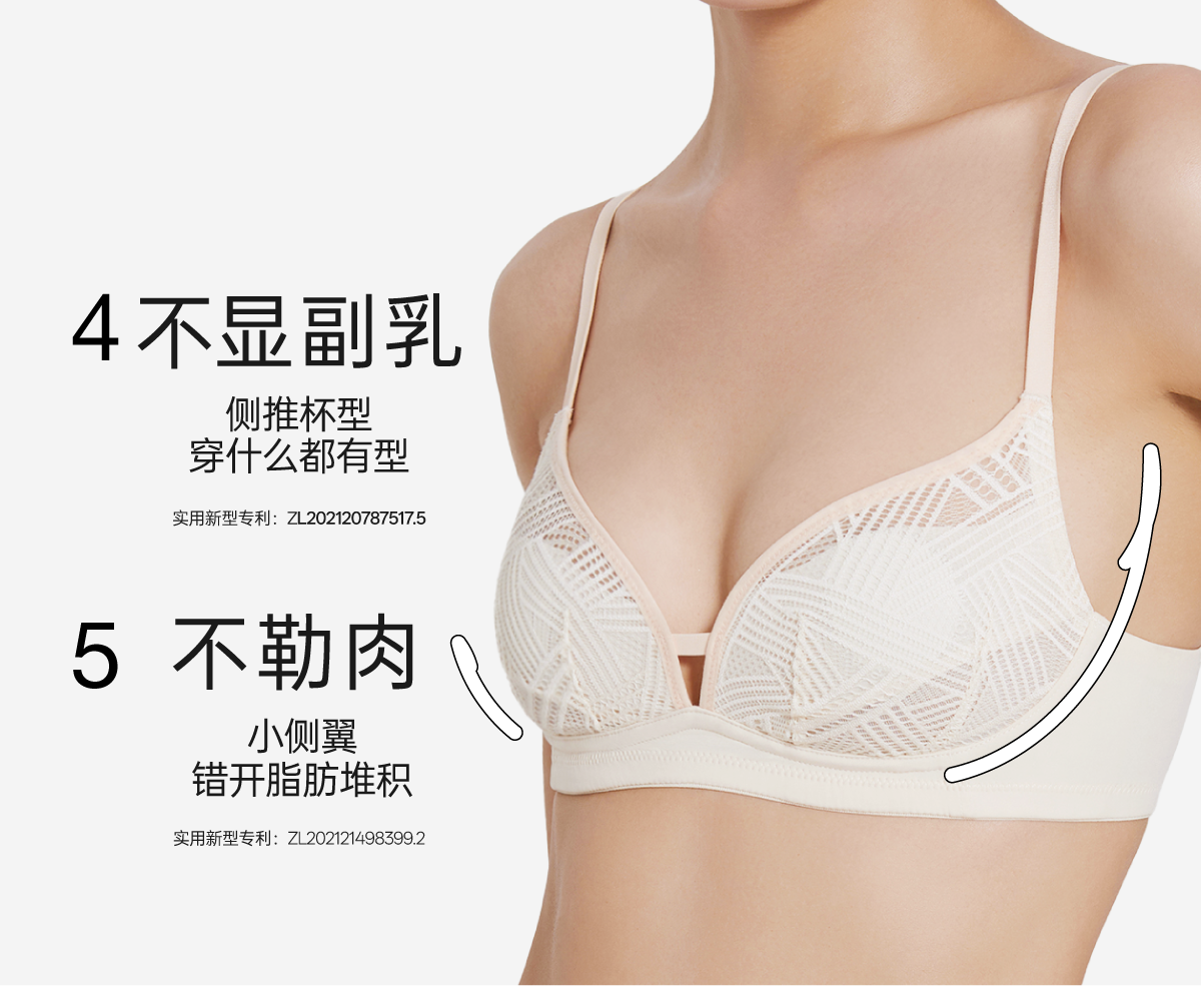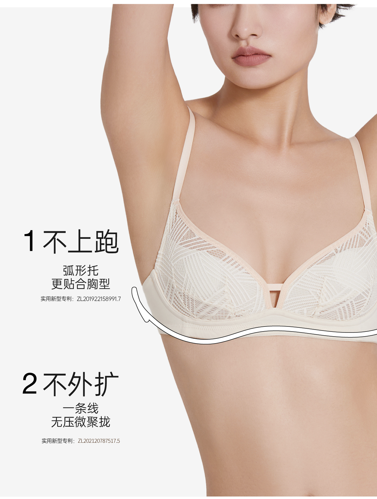 「小单层」莫妮MONI超薄防凸点小胸不空杯速干性感蕾丝单层杯内衣