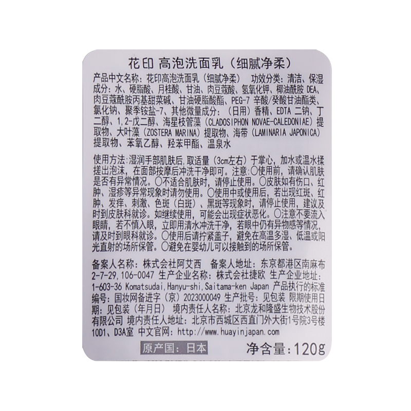 花印高泡洗面乳(细腻净柔)120g