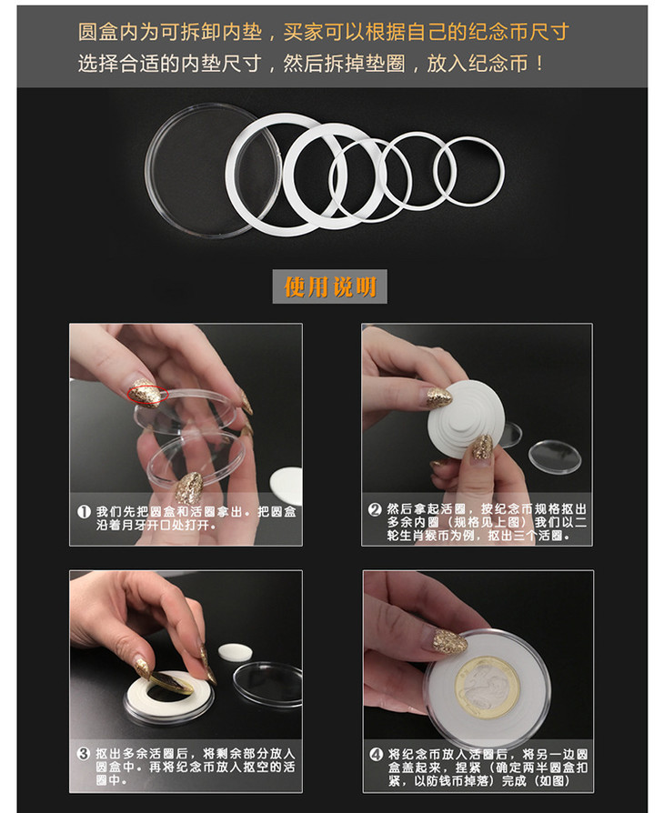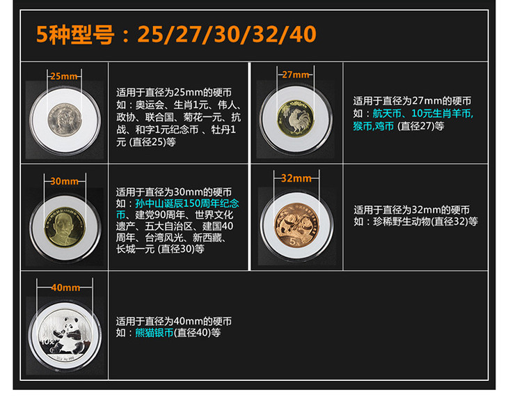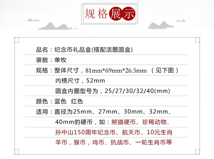 纪念币通用礼品盒、适用于直径25~40mm纪念币