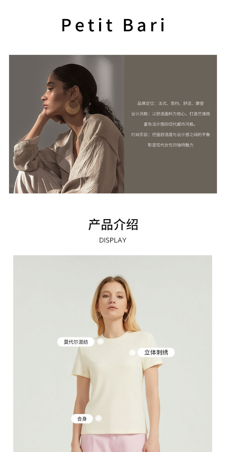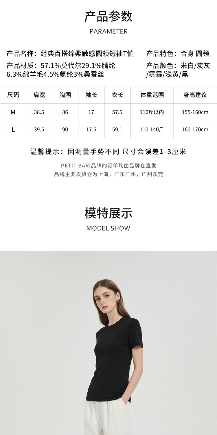 【2件9折】【Petit Bari】Petit Bari经典百搭绵柔触感圆领短袖T恤