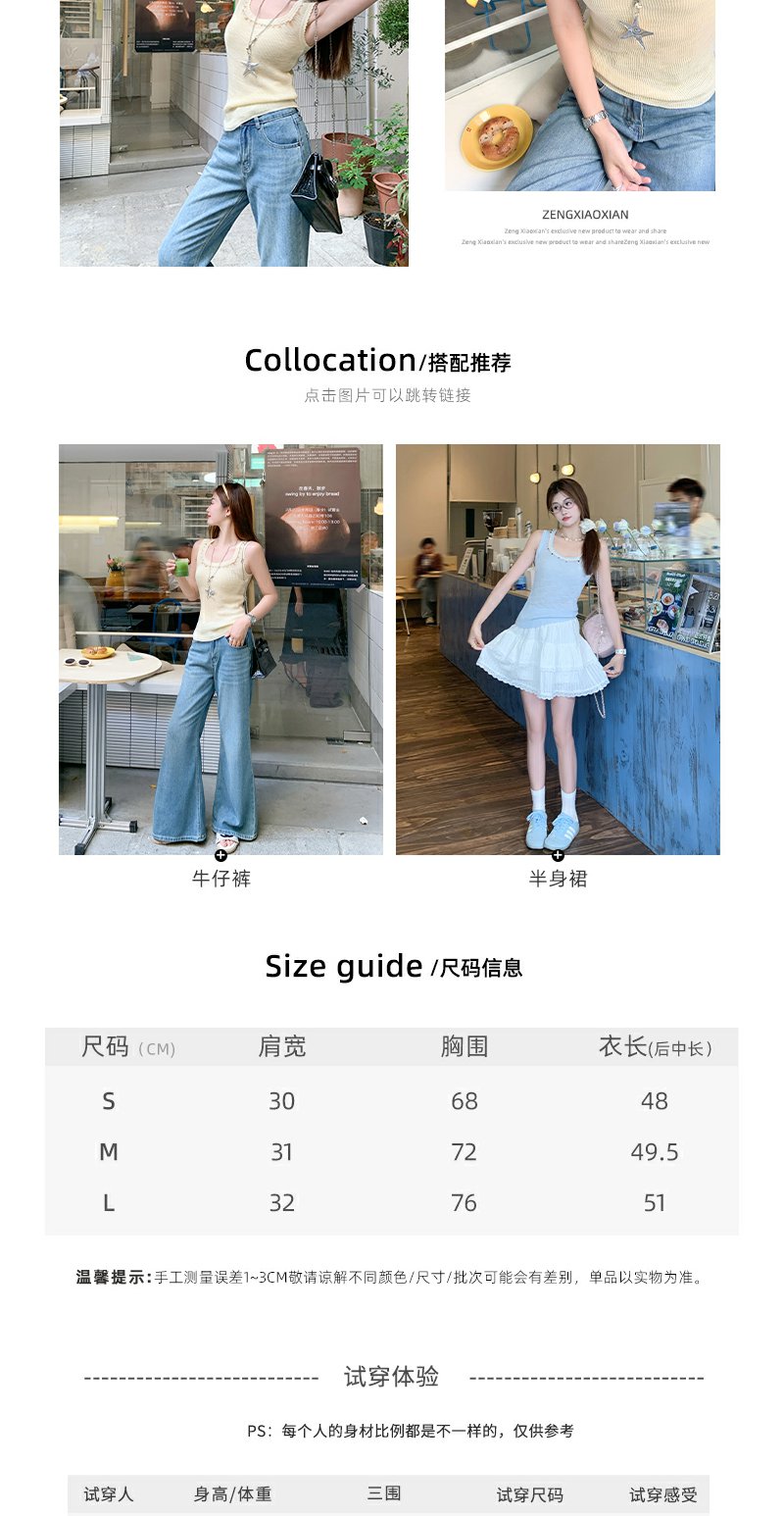 【110元任选2件】最后一波现货!钉珠U领针织背心