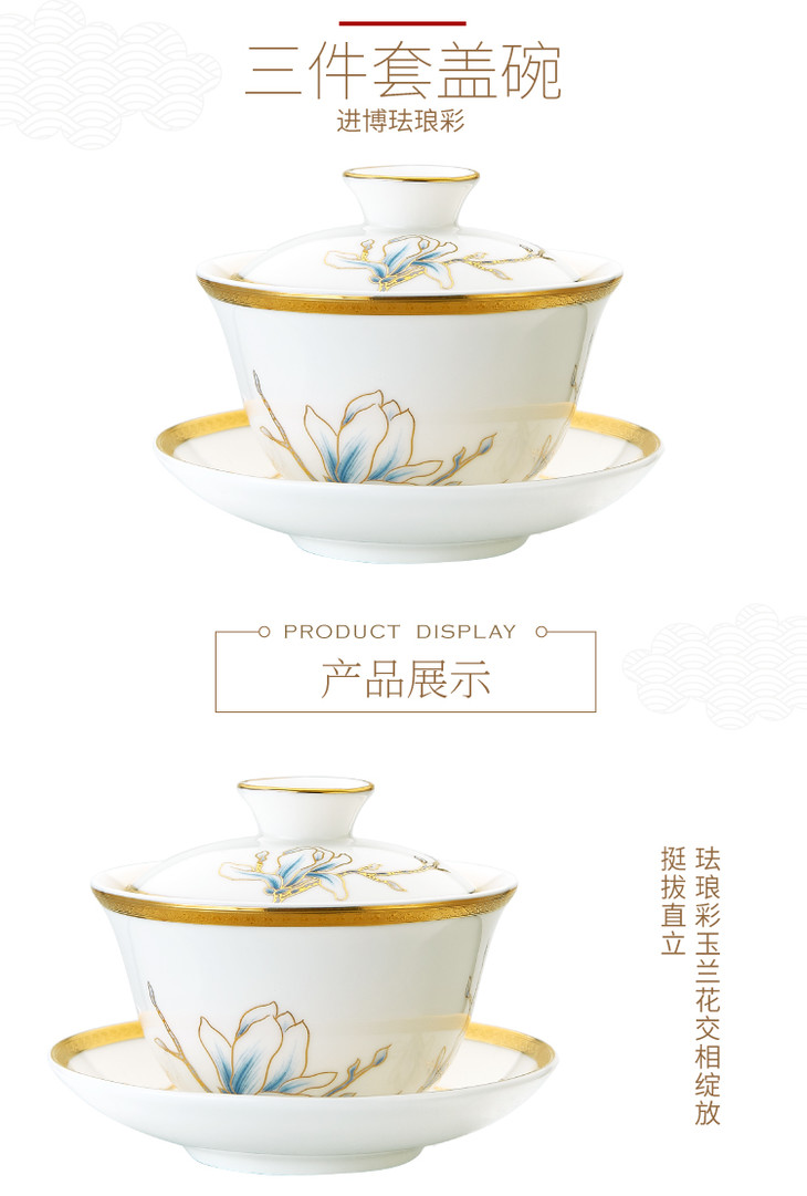 进博珐琅彩三件盖碗