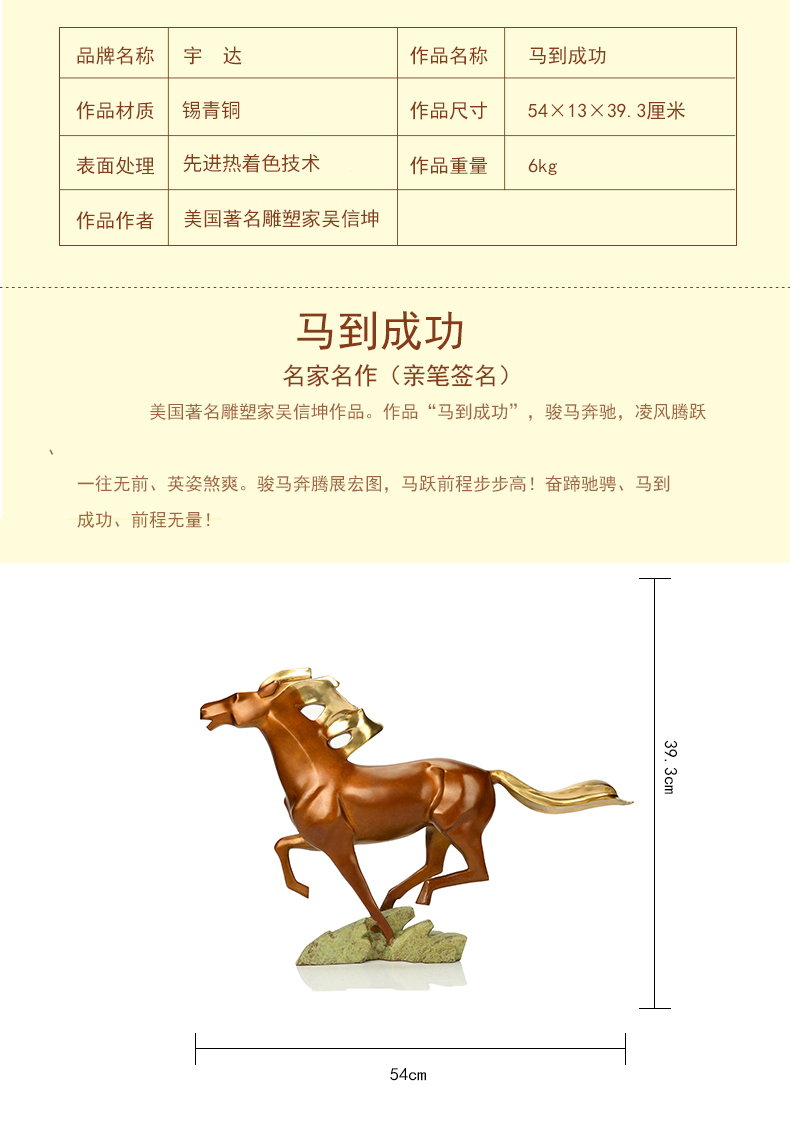 宇达青铜全铜马摆件《马到成功》十二生肖 名家作品 艺术装饰摆件 高39.3cm