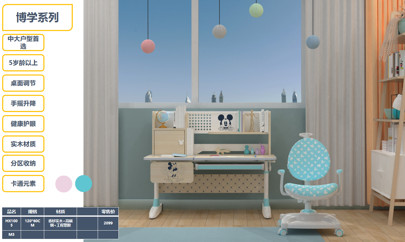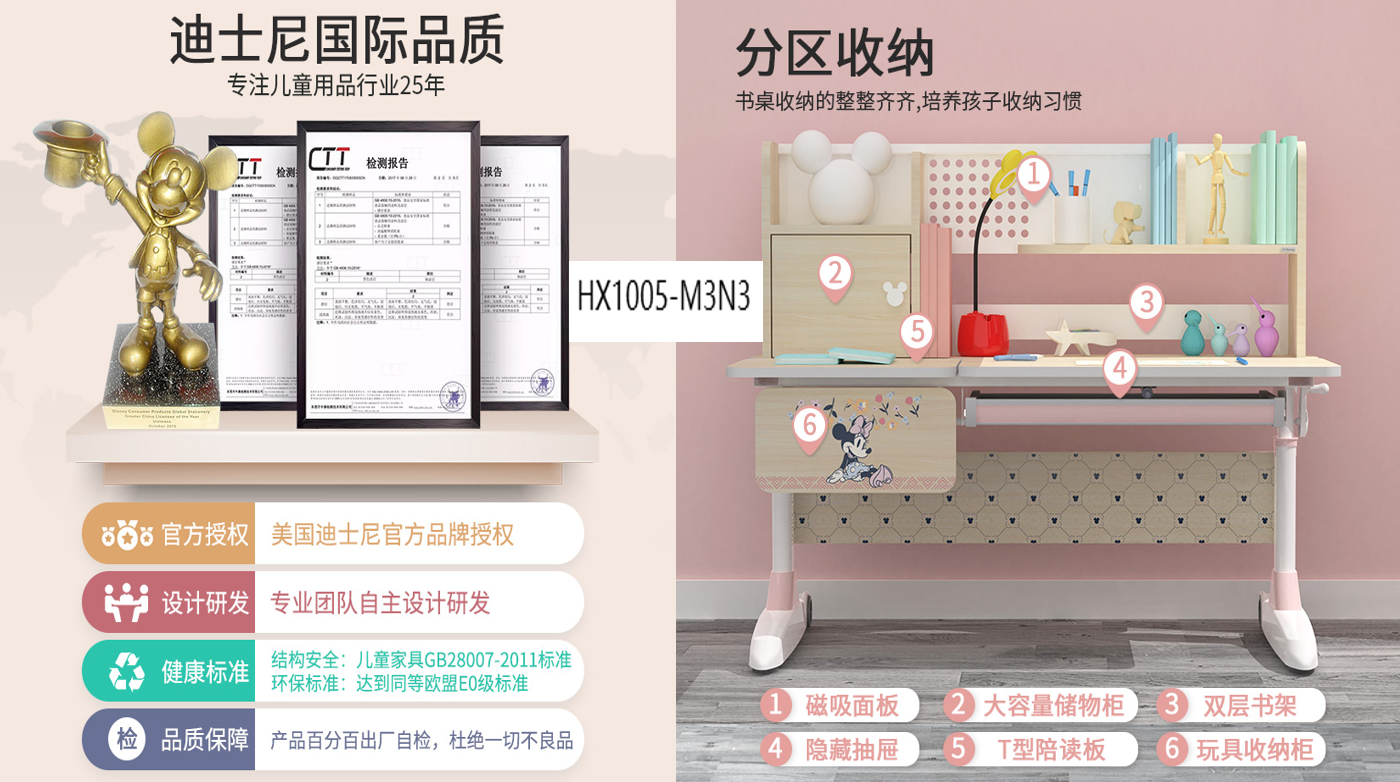 迪士尼儿童学习桌椅HX1005 M3蓝色/N3粉色(120*60CM)桌子+椅子 一套 样品处理