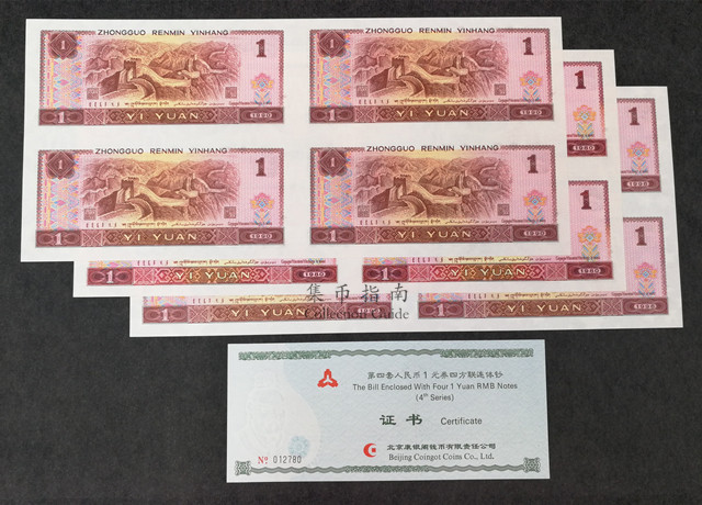 第四套人民币一元劵 四连体
