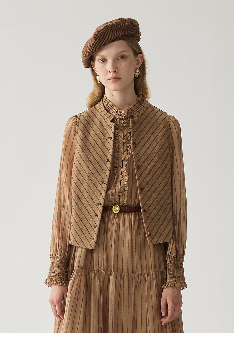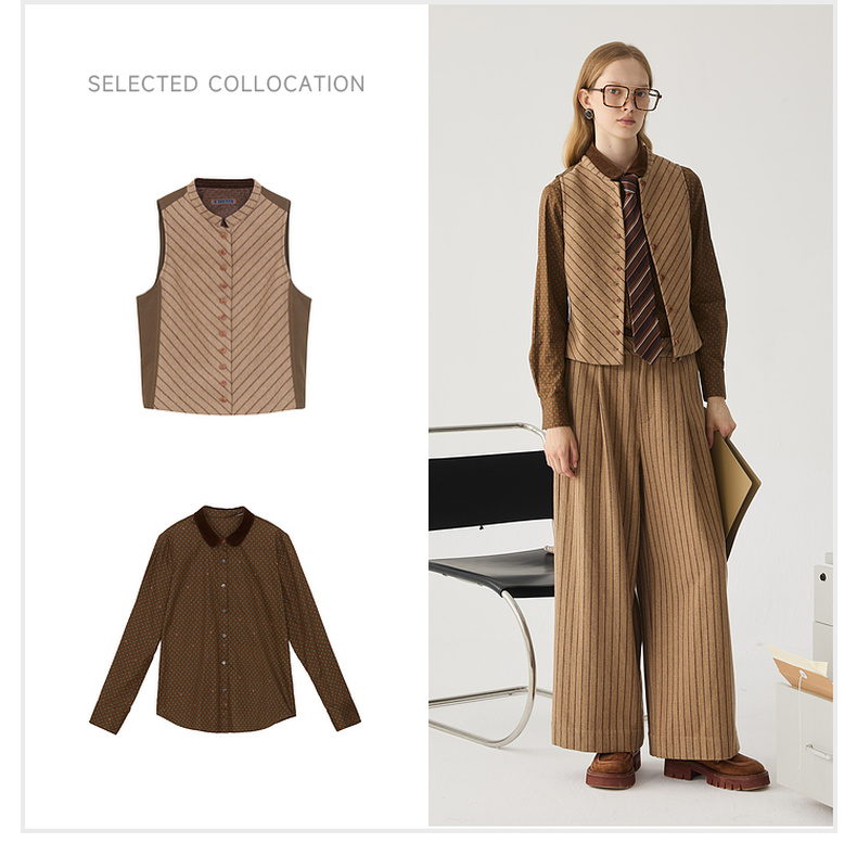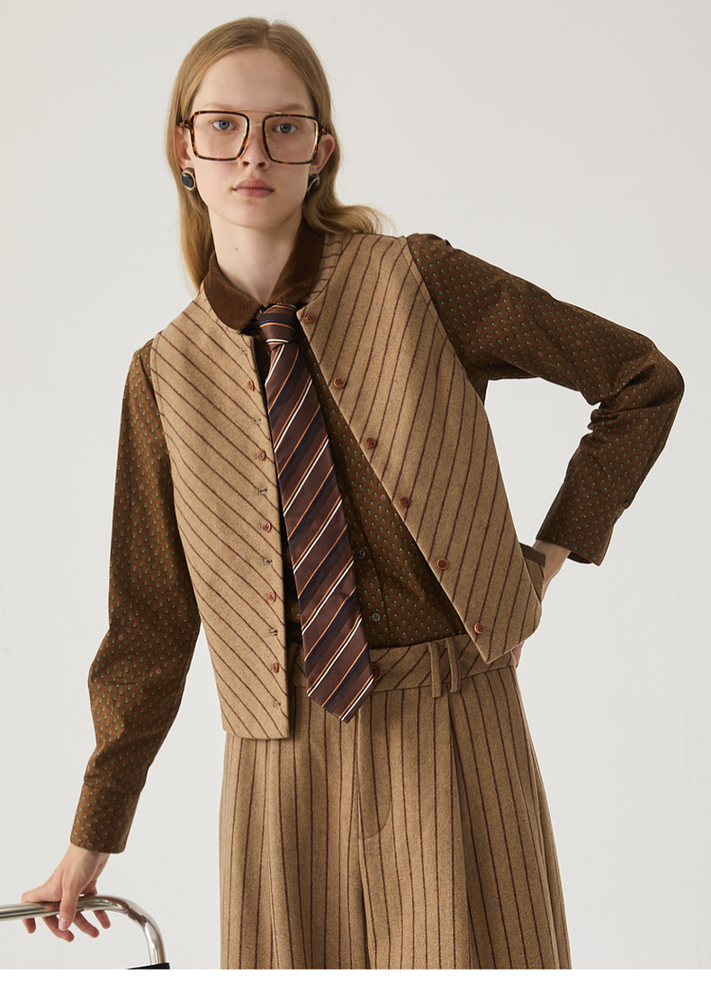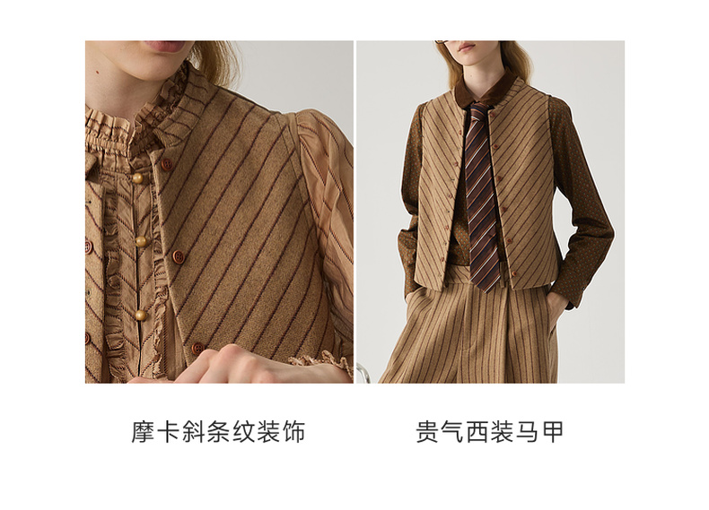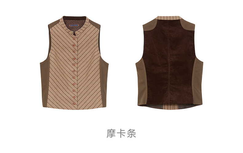 谜底拼接式马甲女2024冬季新品复古风短款修身西装马夹244MM1671