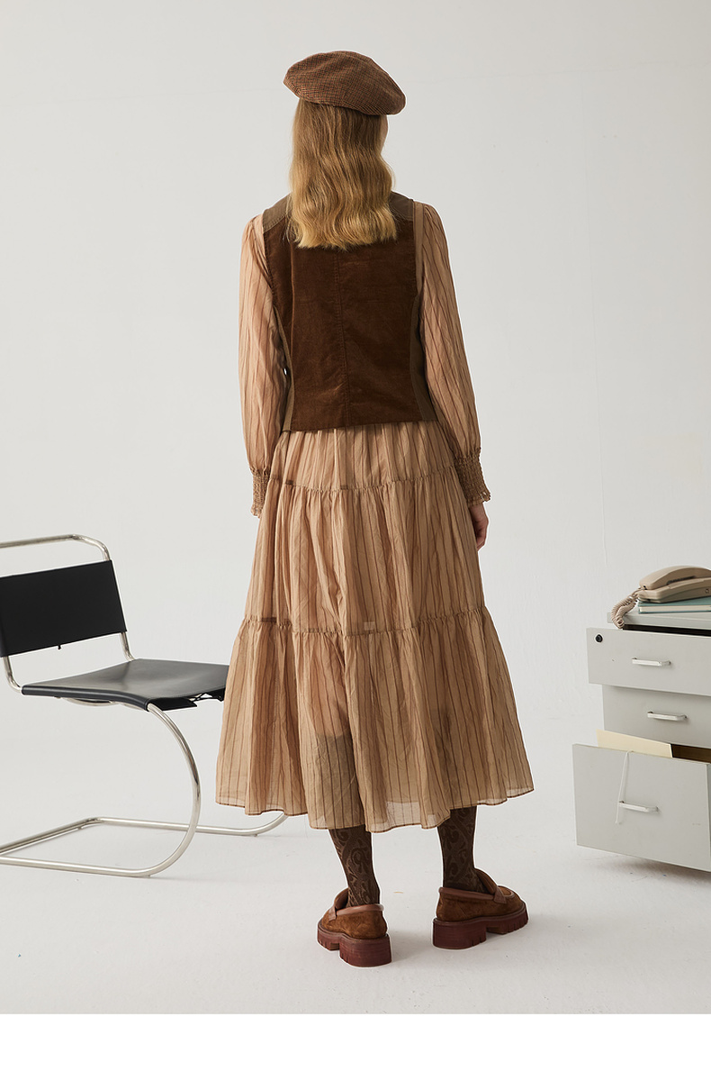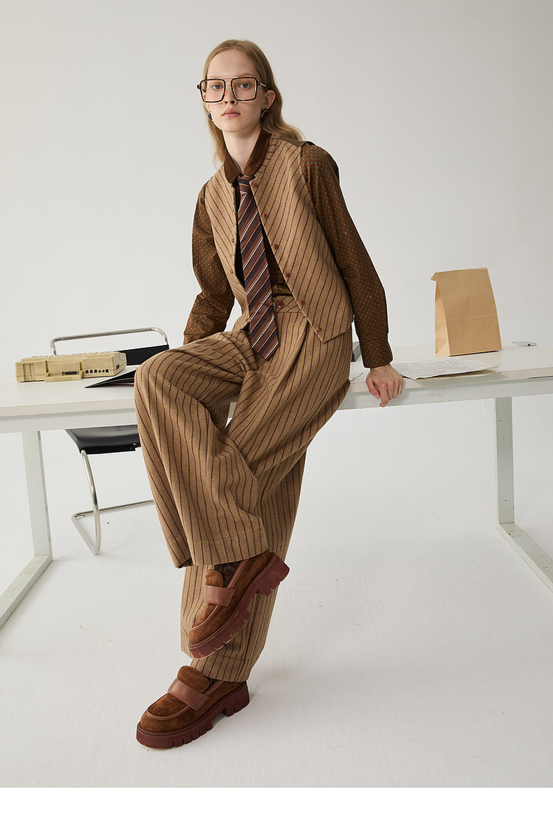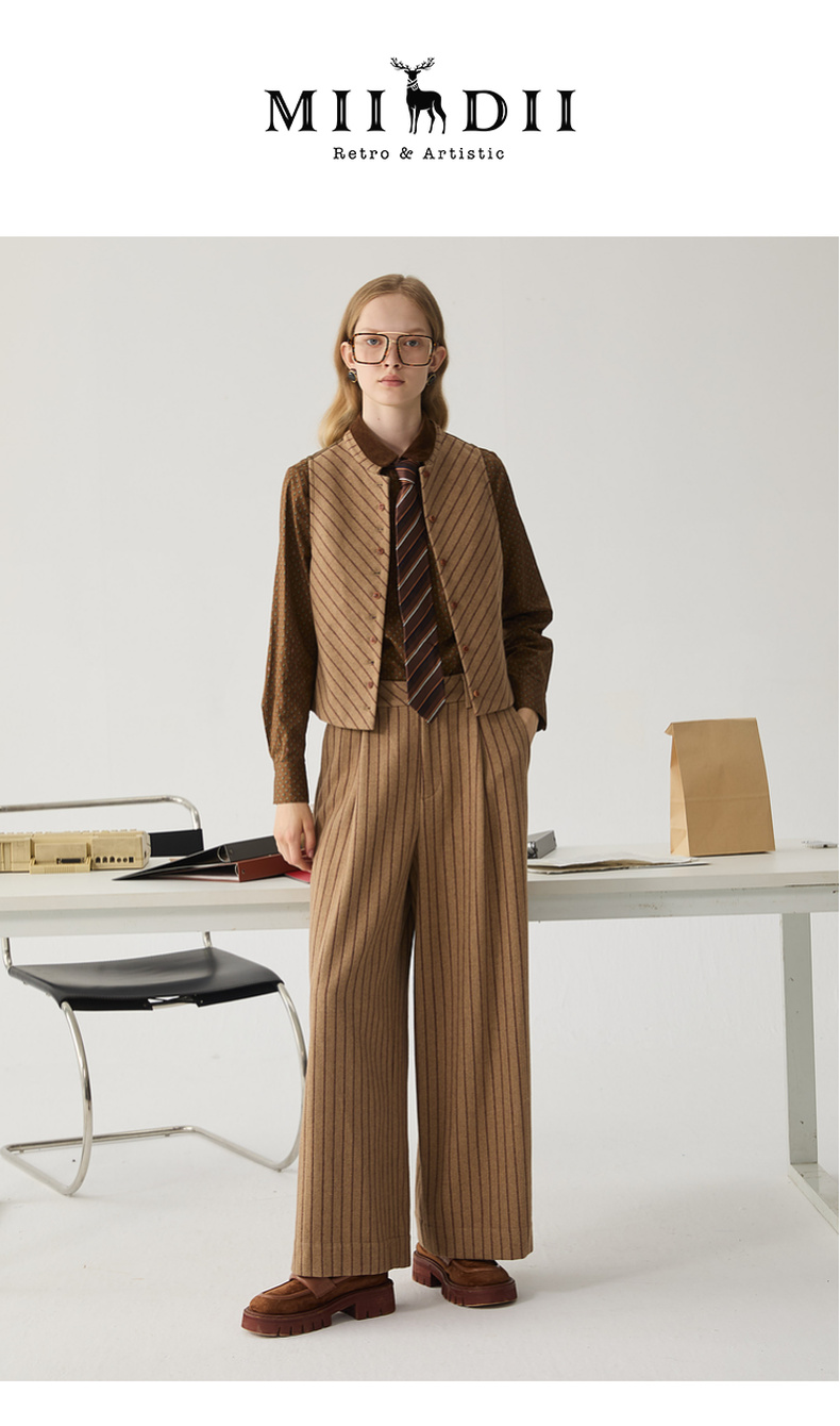 谜底拼接式马甲女2024冬季新品复古风短款修身西装马夹244MM1671