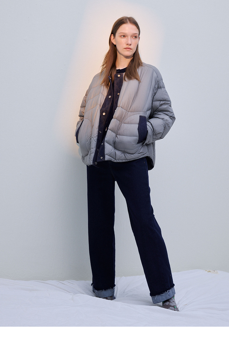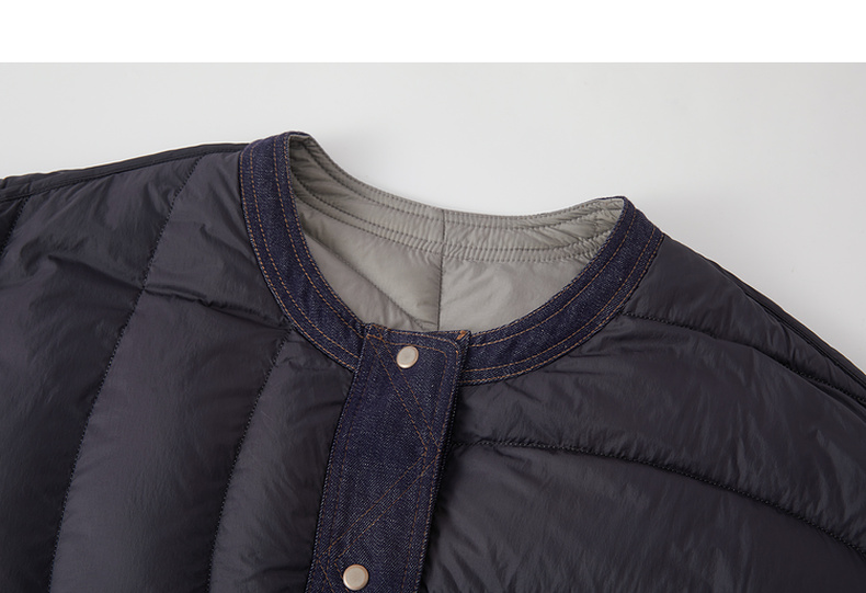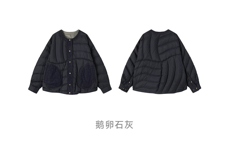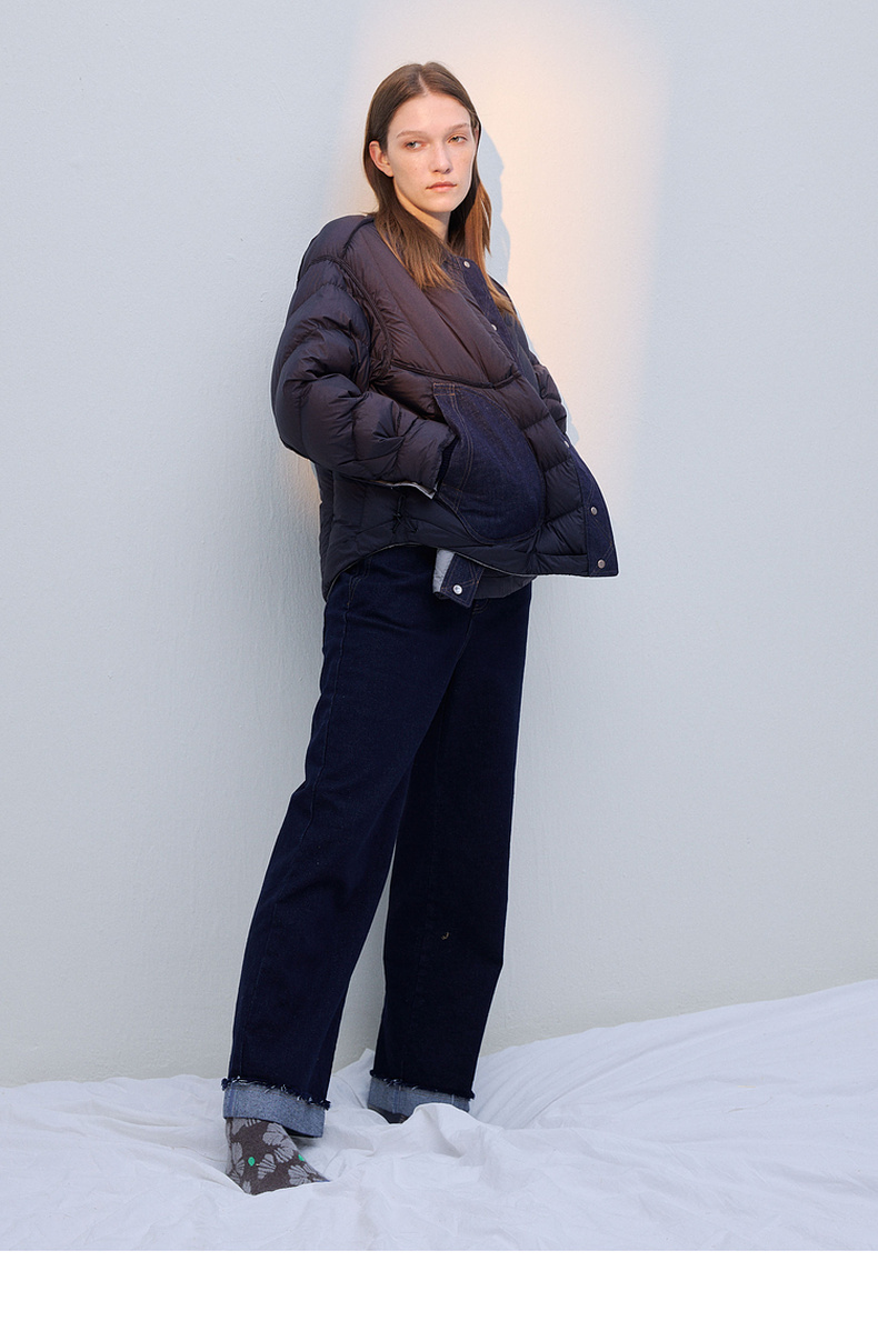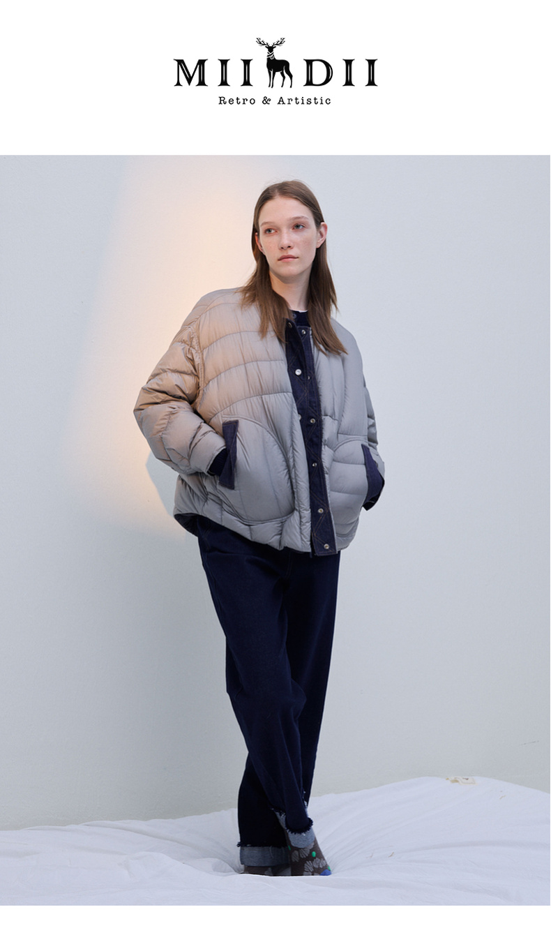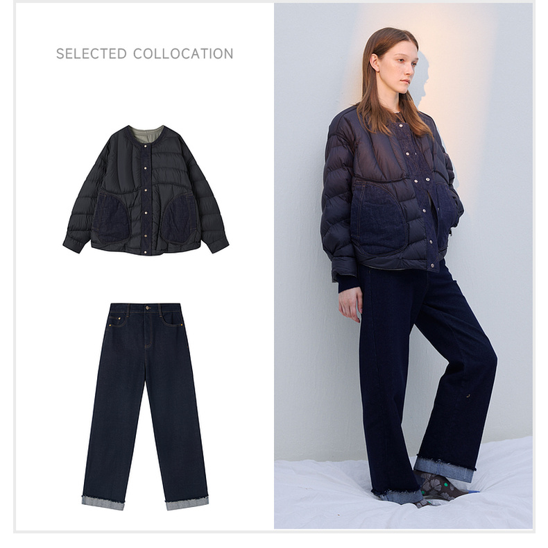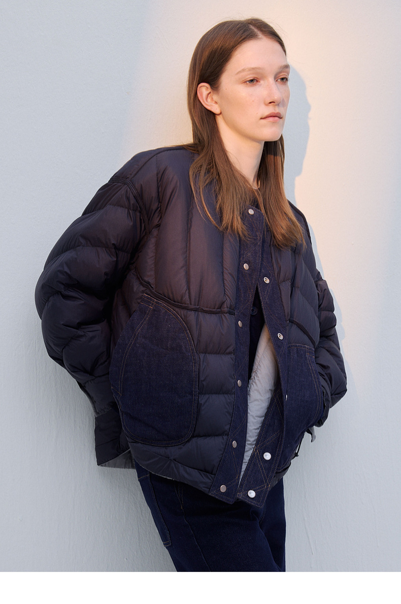 谜底两面穿羽绒服女2025冬季新品圆领百搭宽松拼接牛仔254MY1474