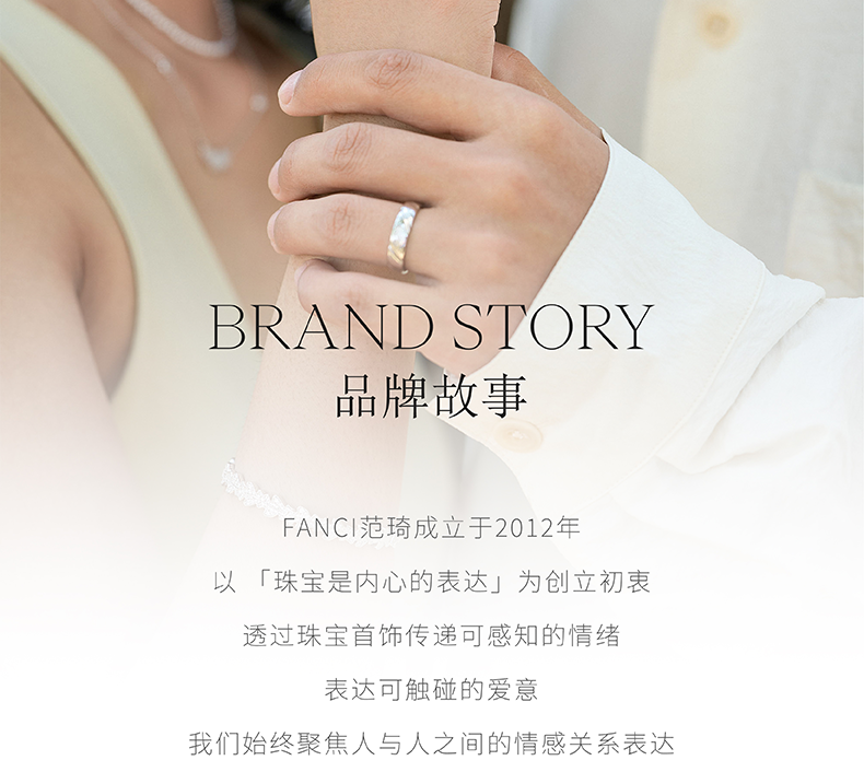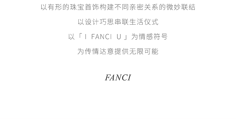 - FANCI范琦始于2012年,以珠宝表达内心为初衷,聚焦不同亲密关系情感表达,联结无形情感,以情感符号「I FANCI U」传情达意,诠释“恋爱戴范琦,起点是你,终点亦是你”始终如一的恋爱价值观。