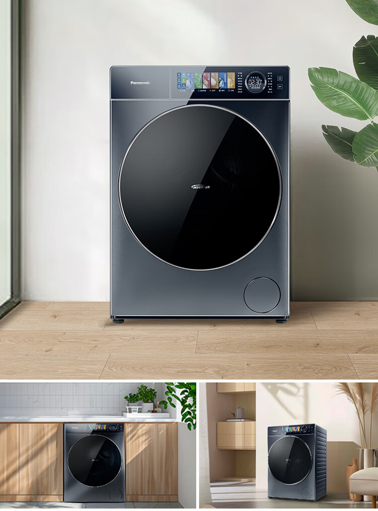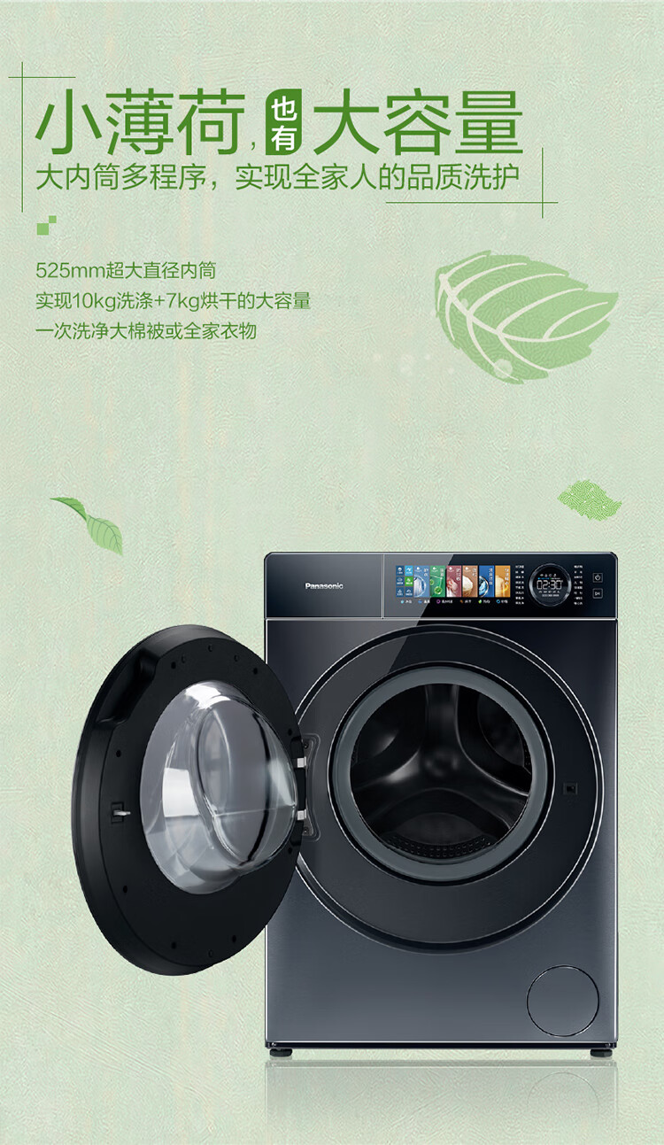 松下10公斤全自动滚筒洗衣机洗烘一体机超薄506mm机身光动银除菌纳诺怡护理双级除螨XQG100-SA167