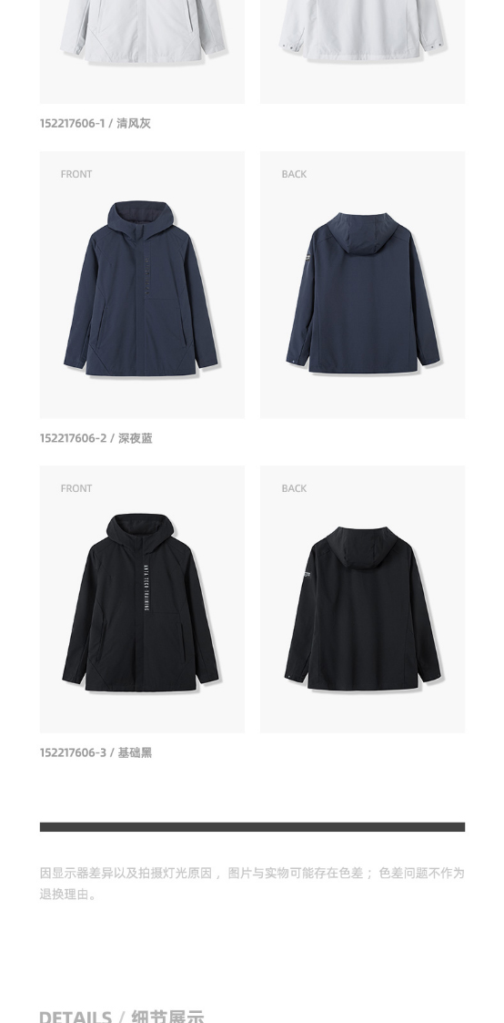 安踏男男连帽上衣外套2022春季新款梭织休闲运动风衣152217606-1/2/3