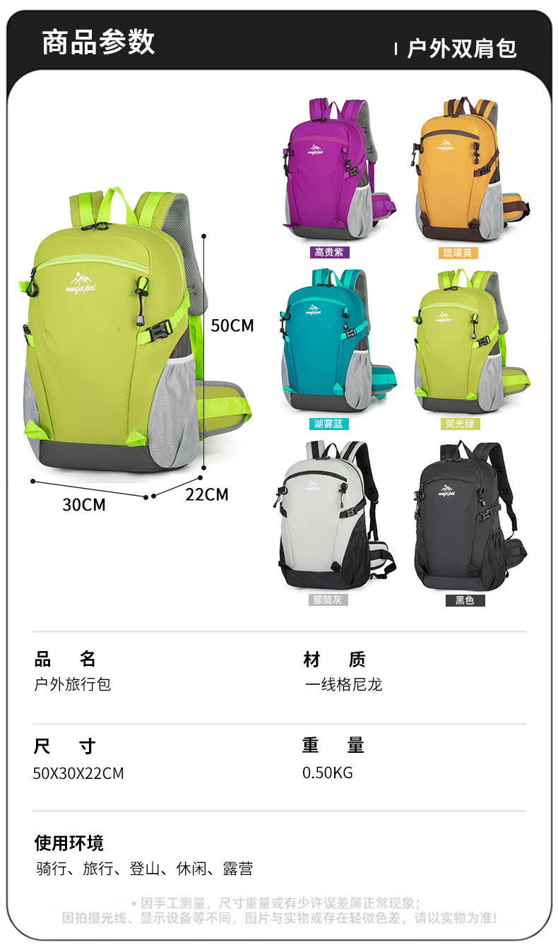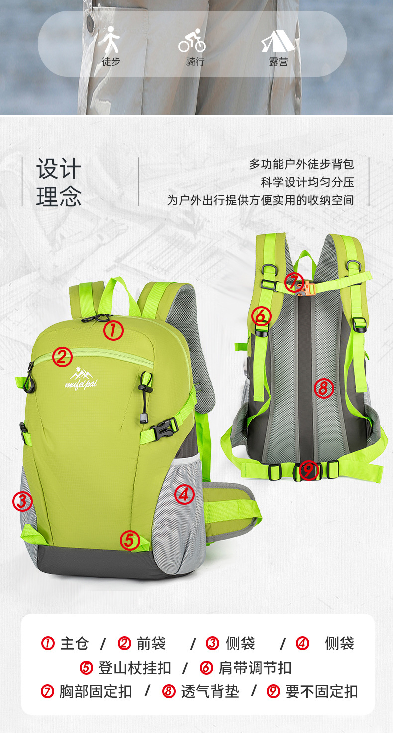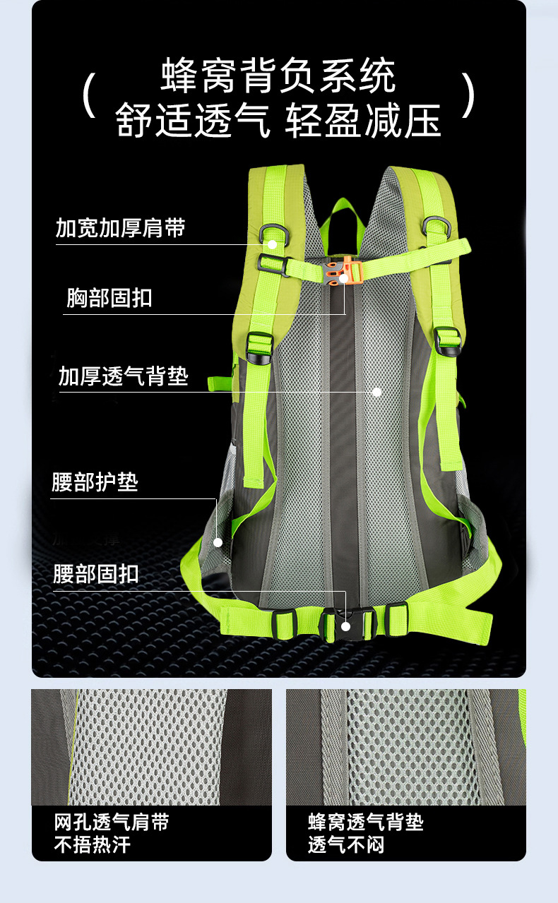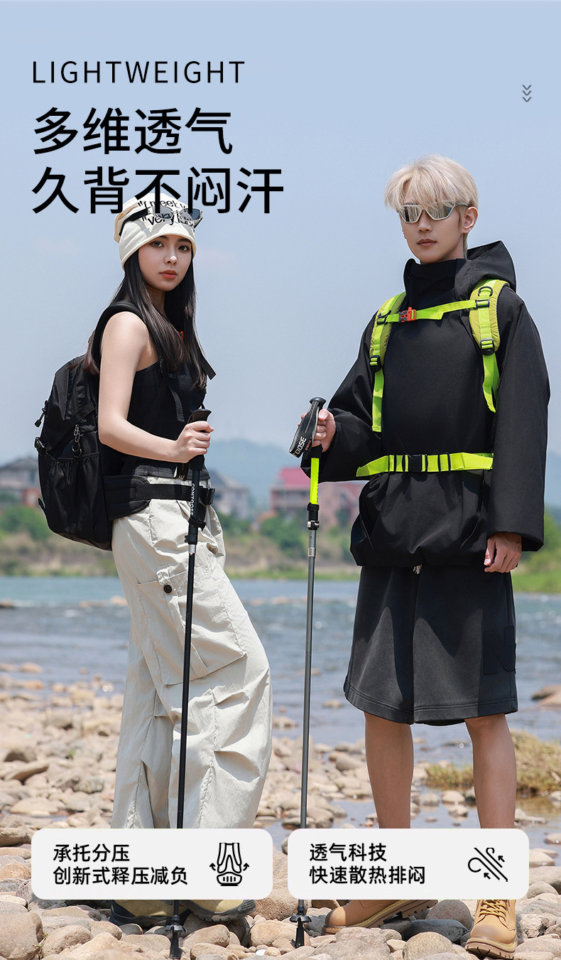 户外登山包轻量化徒步大容量透气背垫骑行背包加宽加厚肩带双肩包情侣包男女同款登山包