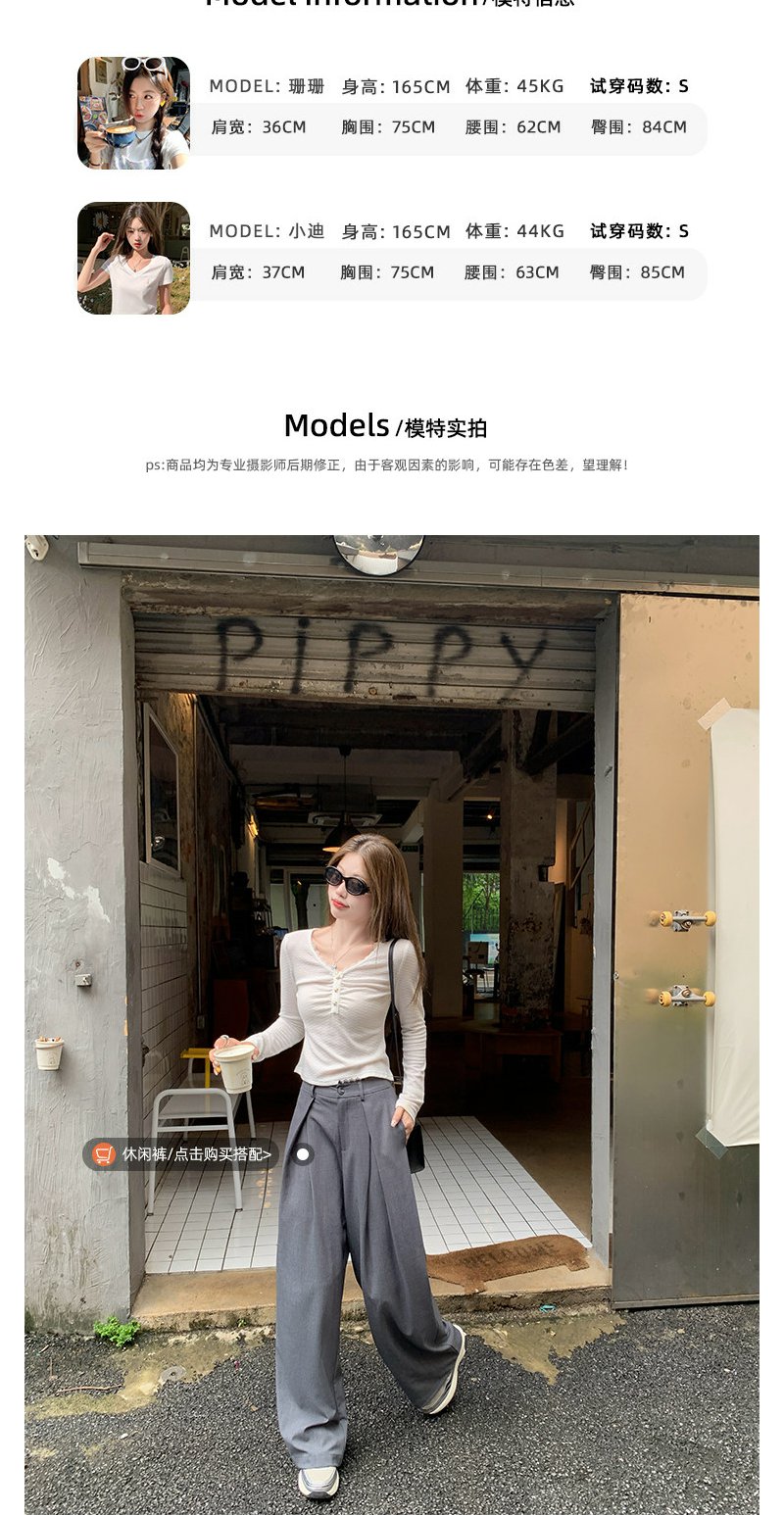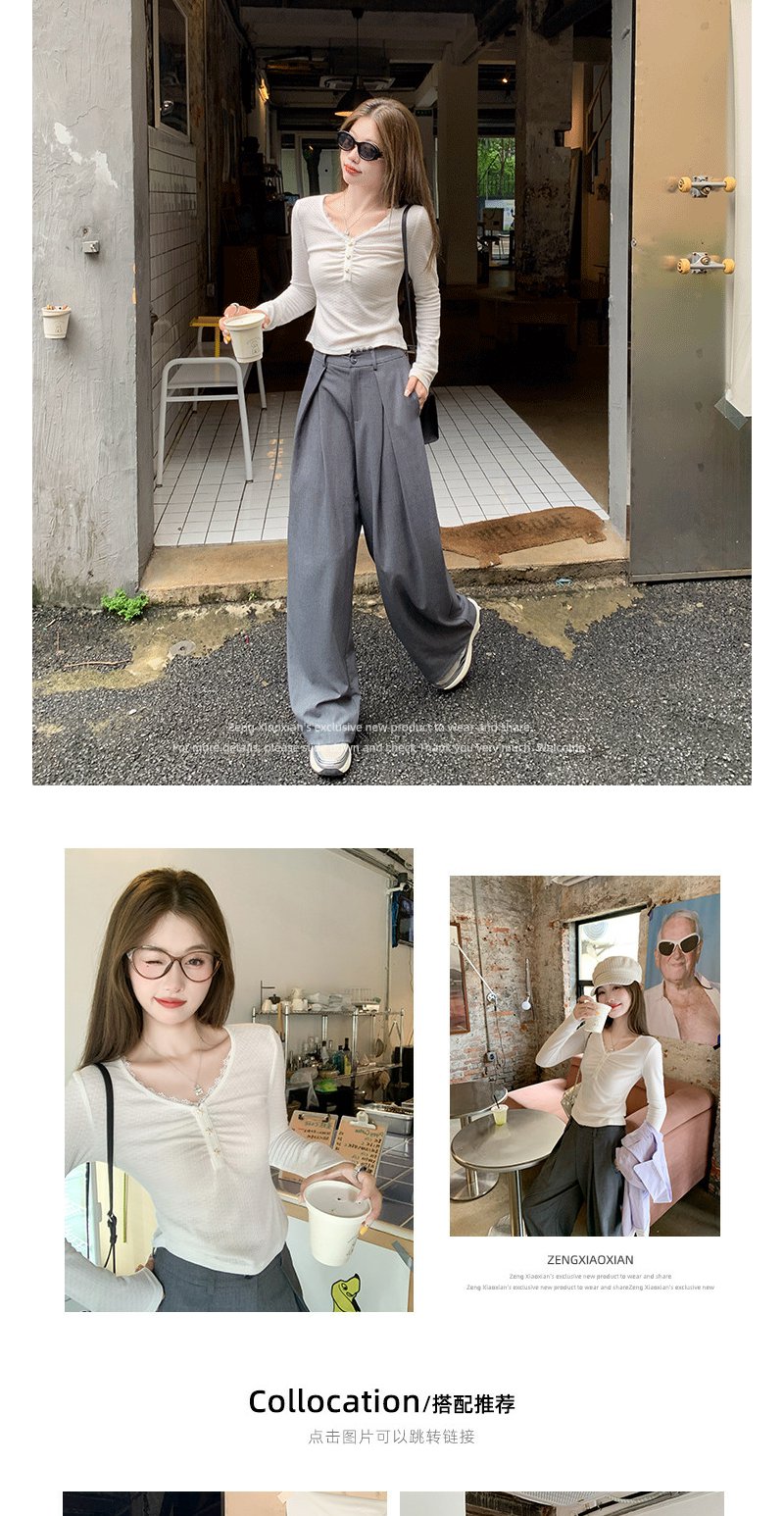 <曾小咸推荐>2.21现货秒杀 !微信超特价!韩系蕾丝边V领长袖T恤 日常109.99 立减50 秒杀59.99!!西装裤 秒杀89.99!!