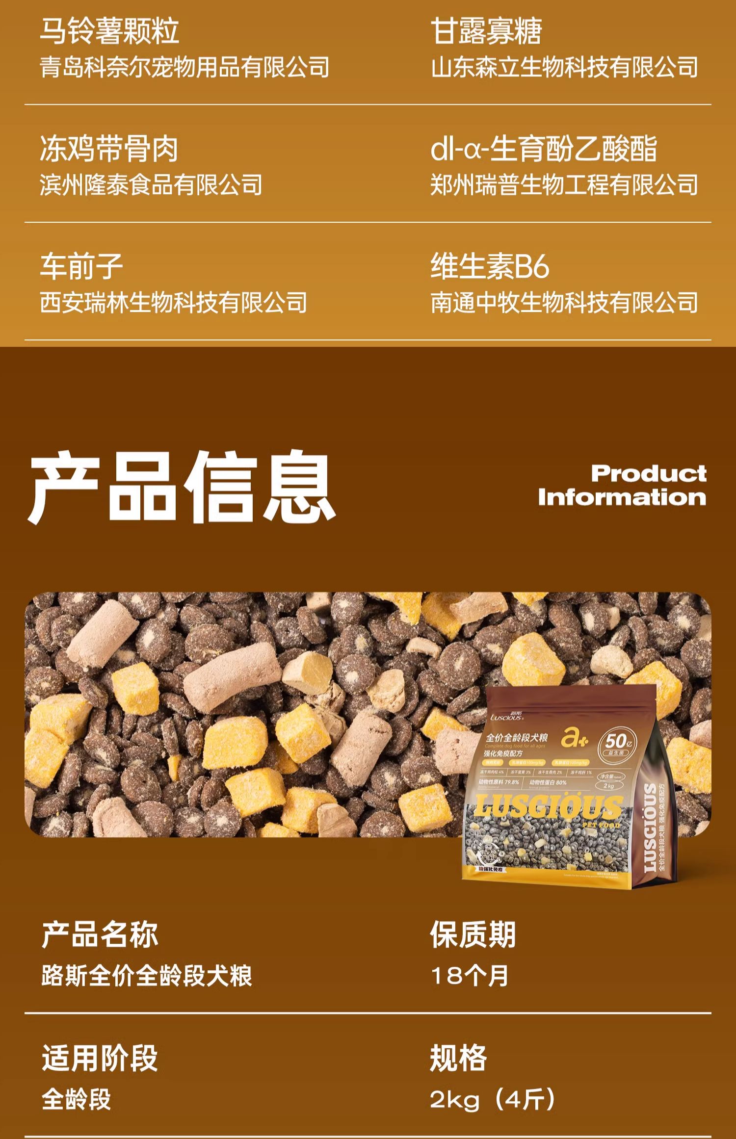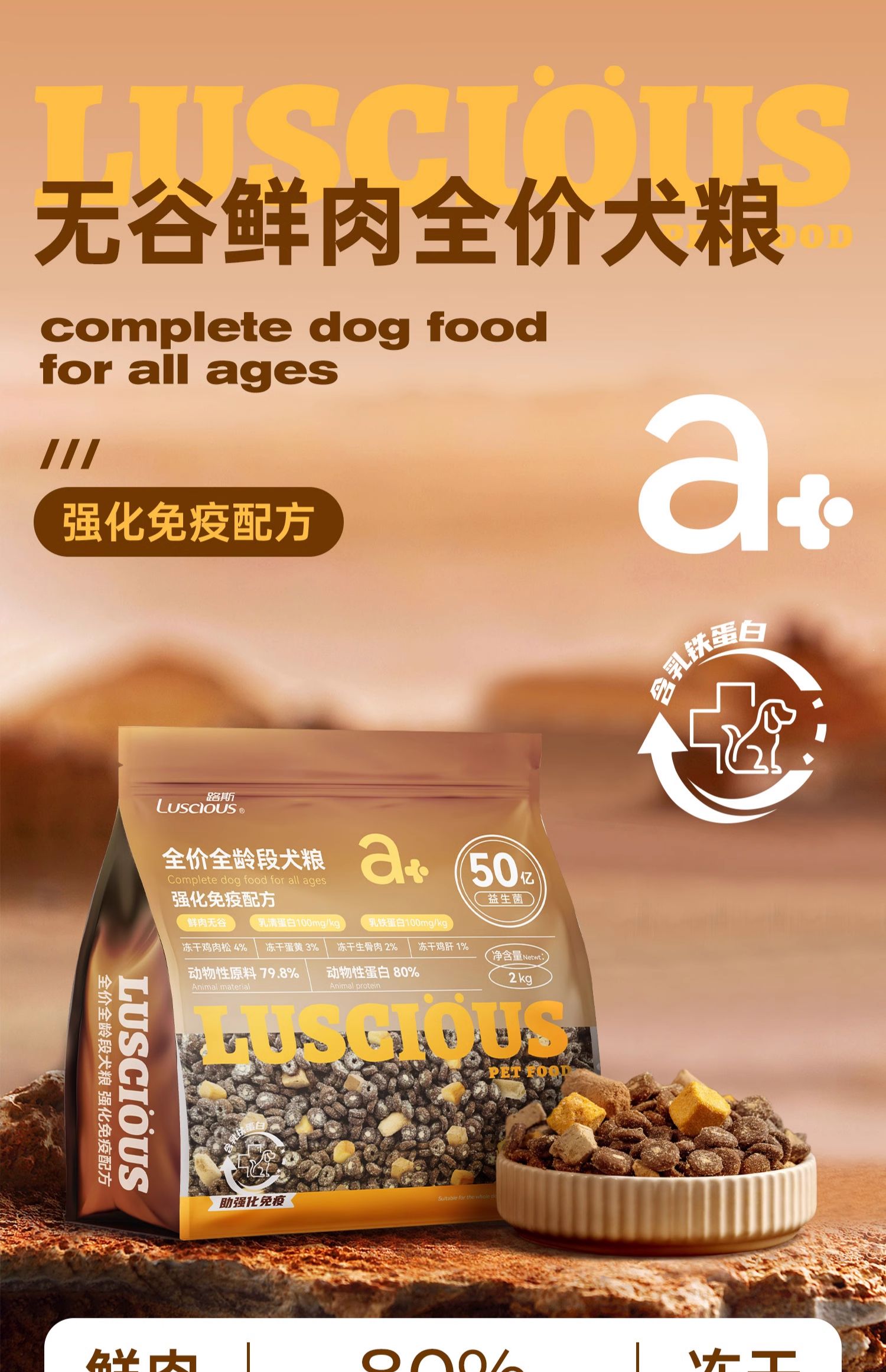 路斯 强健骨骼配方犬粮 2kg 无谷鲜肉通用型全价犬粮