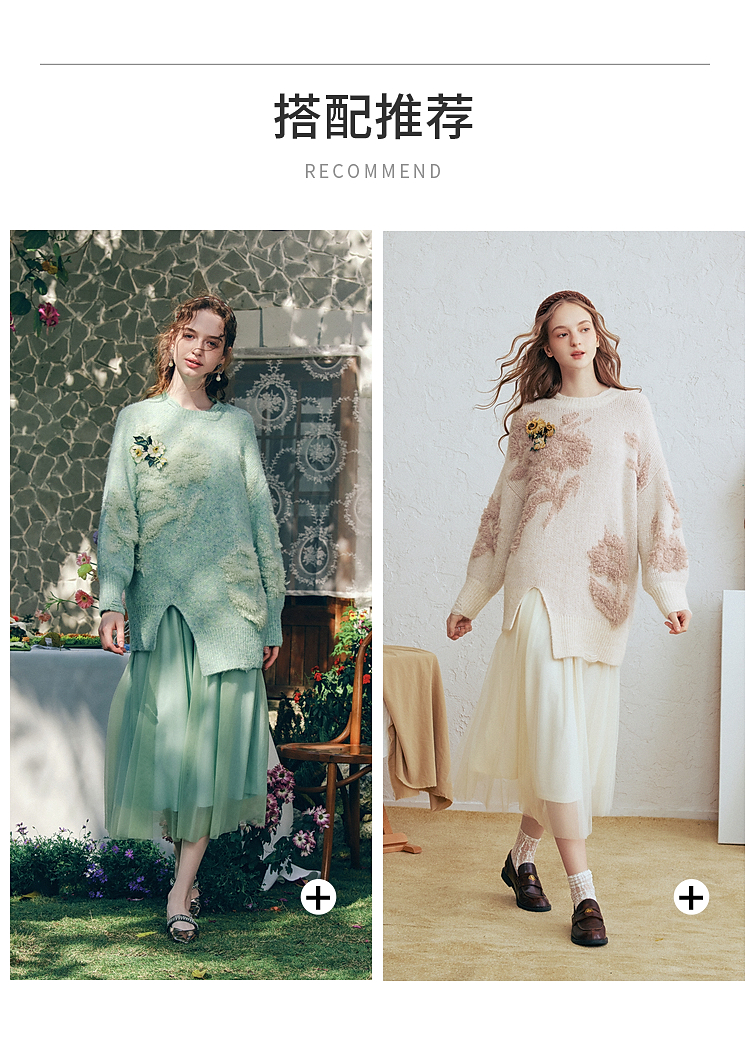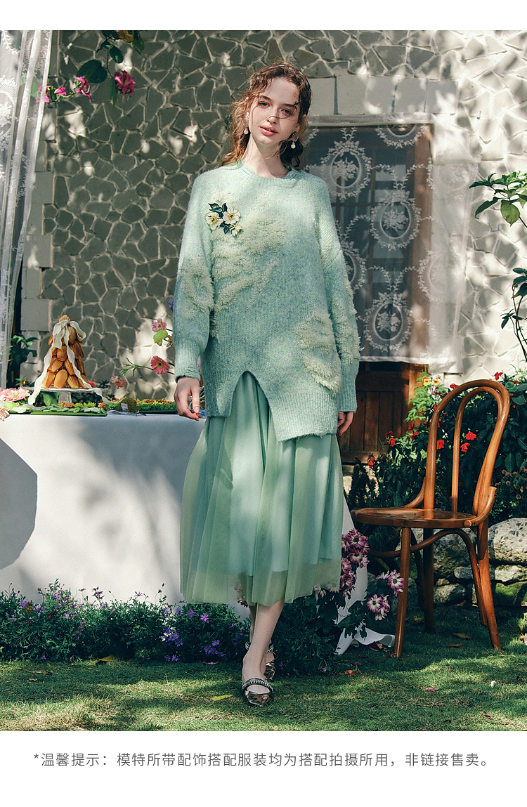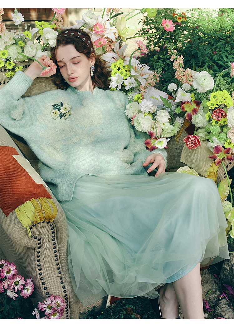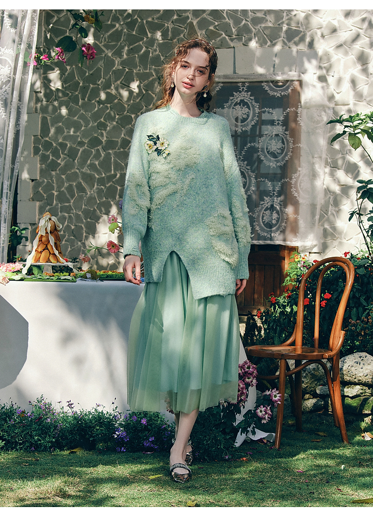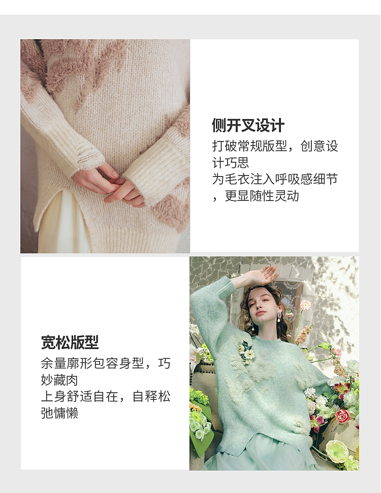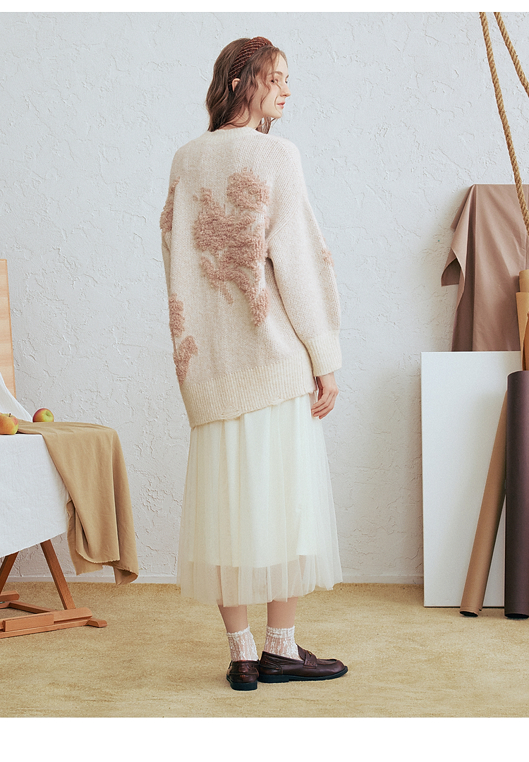 两三事梵高文艺浮光森林2026春季新款甜美花朵章仔绣毛巾绣毛衣女